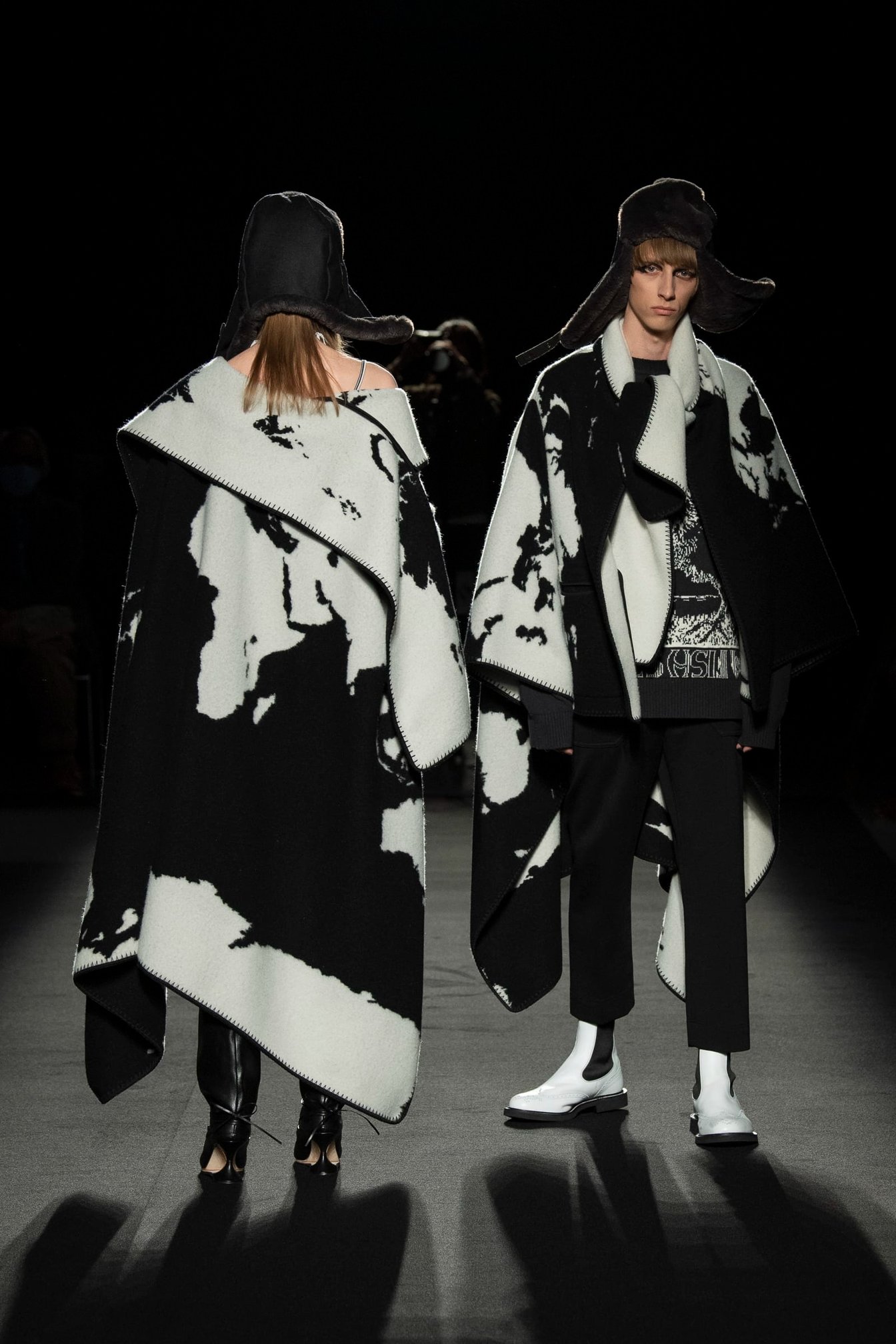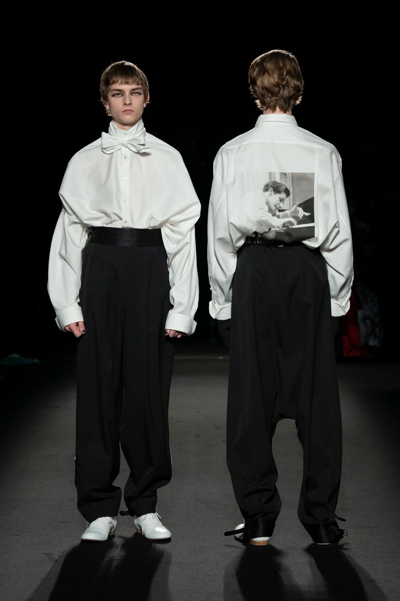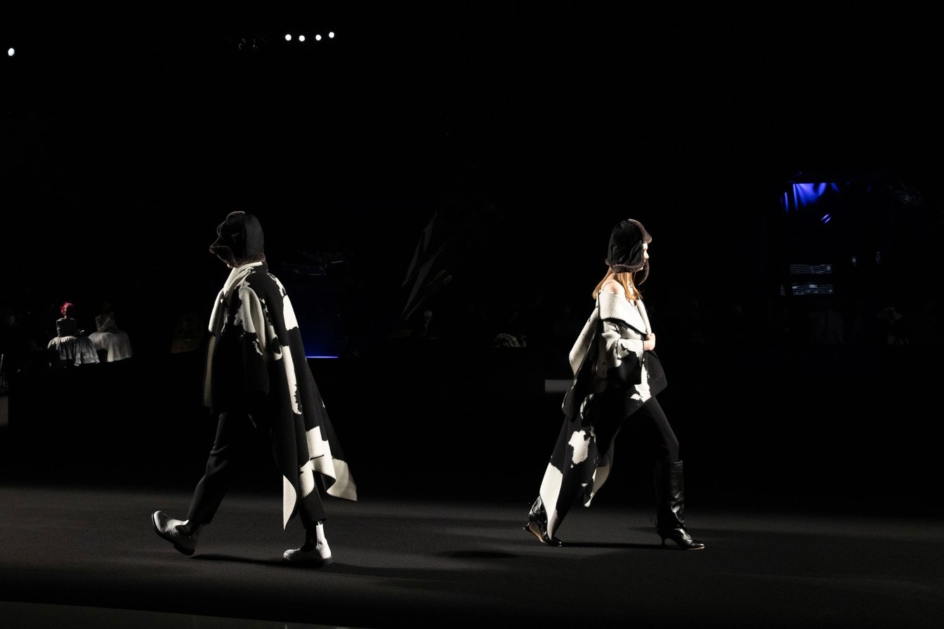 デジタルショーではウィメンズモデルのみの出演だったが、今回のショーでは男女のモデルをキャスティングした。この見せ方は同じ服を男女で着た場合、一着の中にフェミニンなシルエットとマスキュリンなシルエットが共存するというアイデアをデモンストレーションしており、デジタルショーでは披露していなかった「ダブルエンド」が持つ多面的な魅力を存分に示していた。
