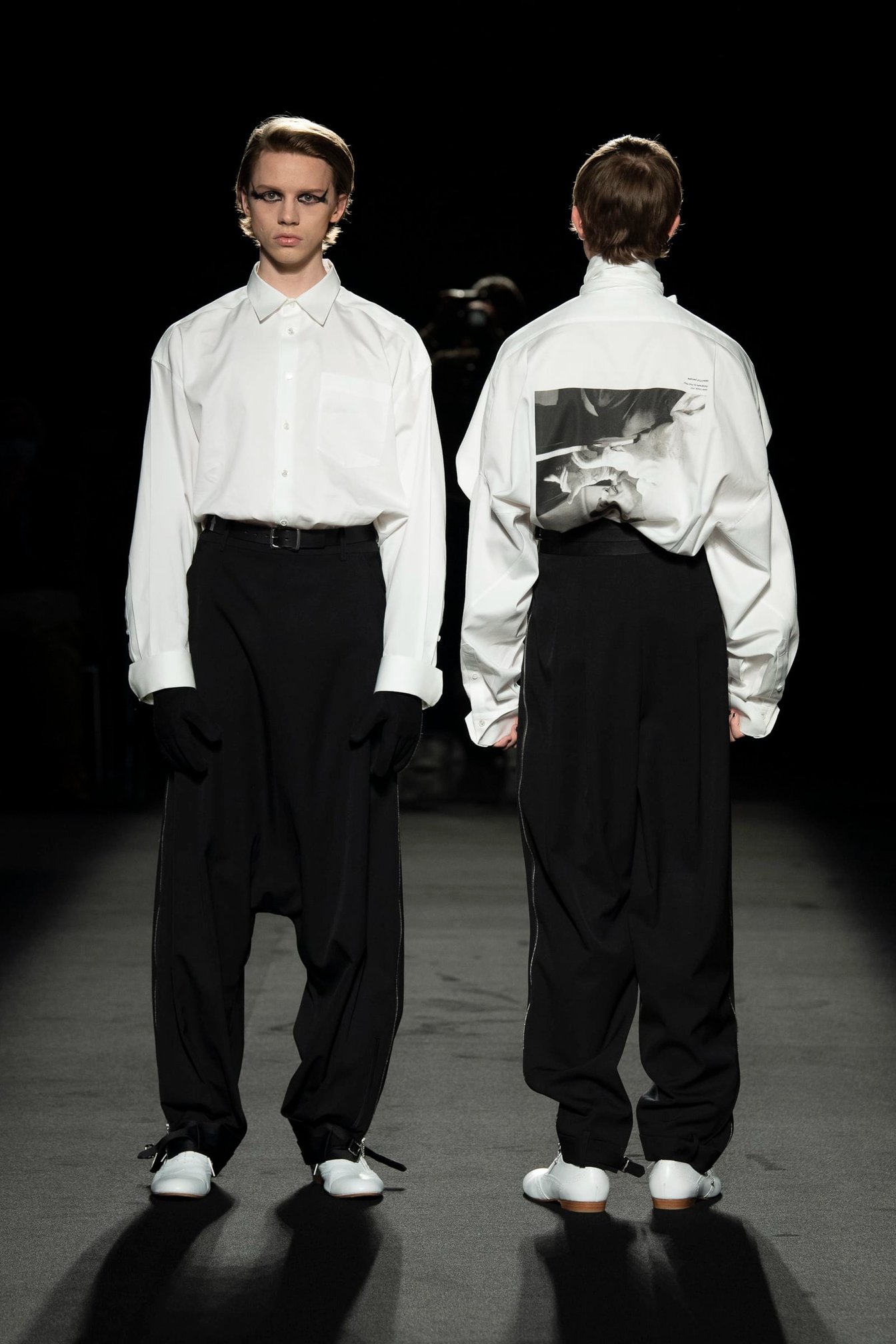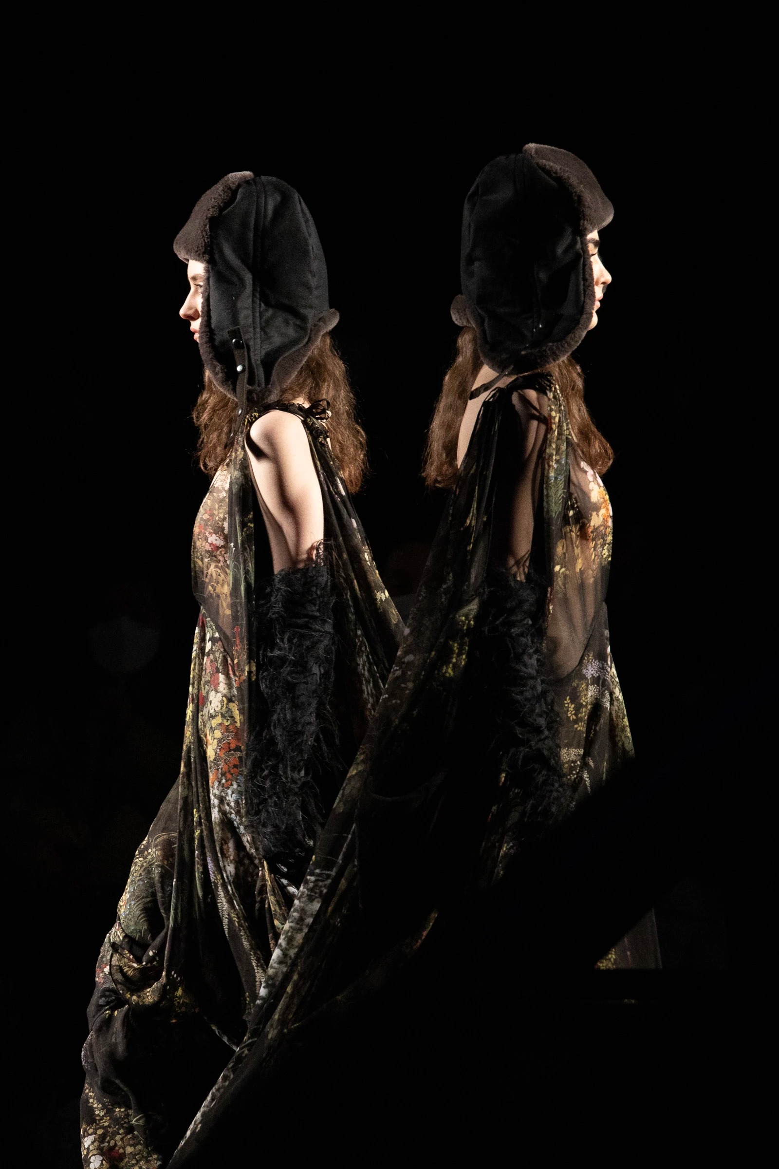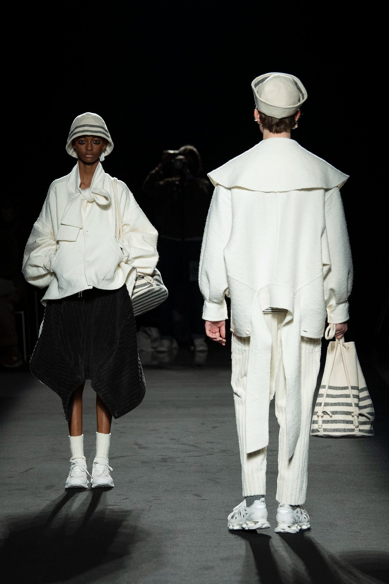 今シーズンは、2021年フォールコレクションで発表した、上下を逆さに着ると全く異なるシルエットに入れ替わるというアプローチ「ダブルエンド(double-end)」をアップデートしたコレクションとなっている。