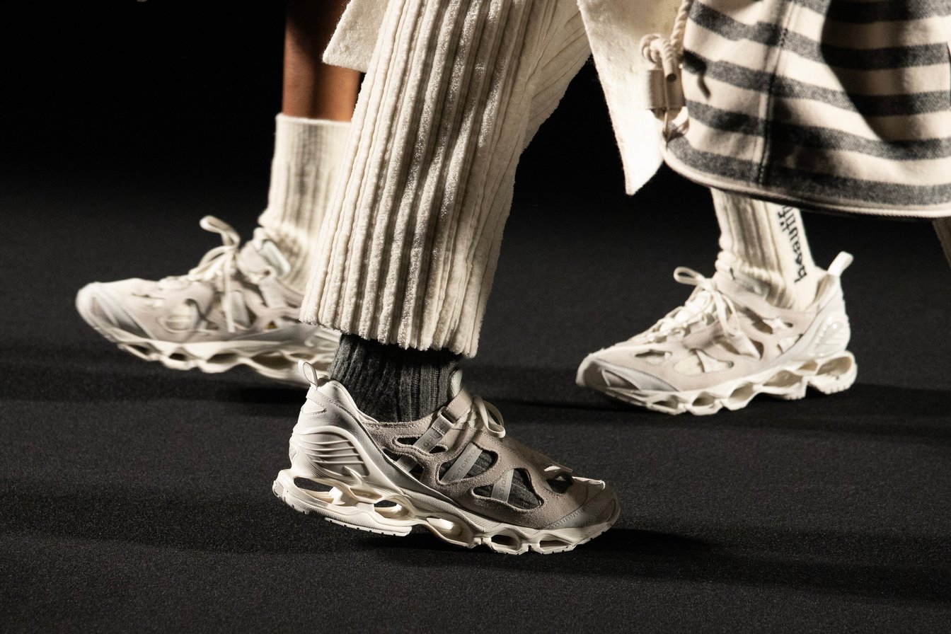 「ミズノ」とのコラボレーションは2021年春夏コレクションに続き2シーズン目。前回はバックパックとスニーカーが発売されたが、今回はスニーカーに加え、「ダブルエンド」仕様のウェア4型も登場するという。