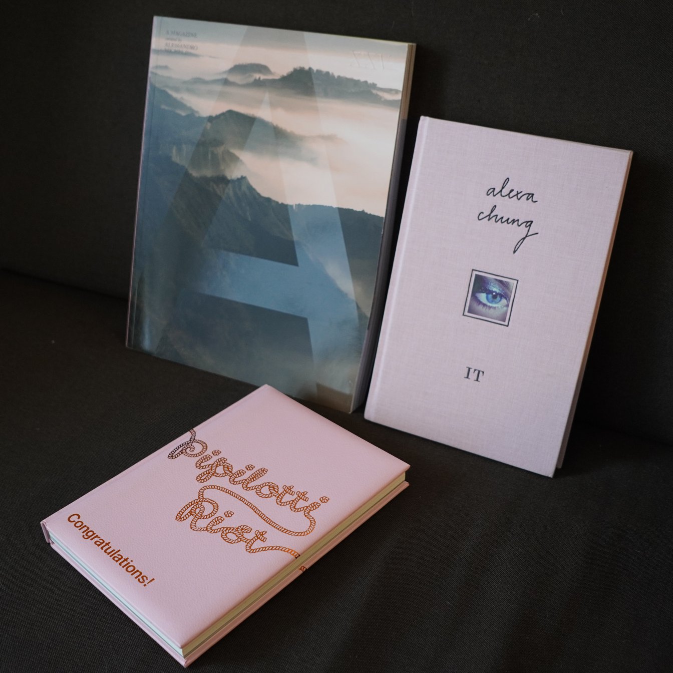 (左から時計回りに)『A Magazine Curated by Alessandro Michele』 、Alexa Chung 『It』、Pipilotti Rist 『Congratulations!』:すべてAYANAさんの私物