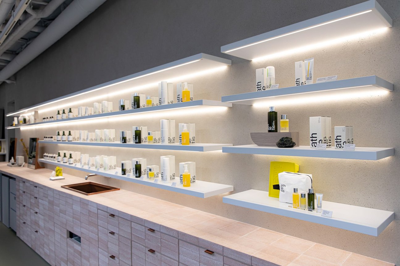「SHIRO 表参道本店」は2020年に旧店舗から約3倍に拡張リニューアル。コスメ、スキンケア、フレグランスに加え、食品やホームケア商品も販売しています。地下1階にはビューティーサロン「SHIRO BEAUTY」を併設。ヘアと一緒にフェイシャル&ボディスパも体験できます。