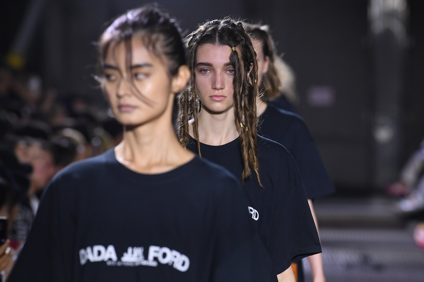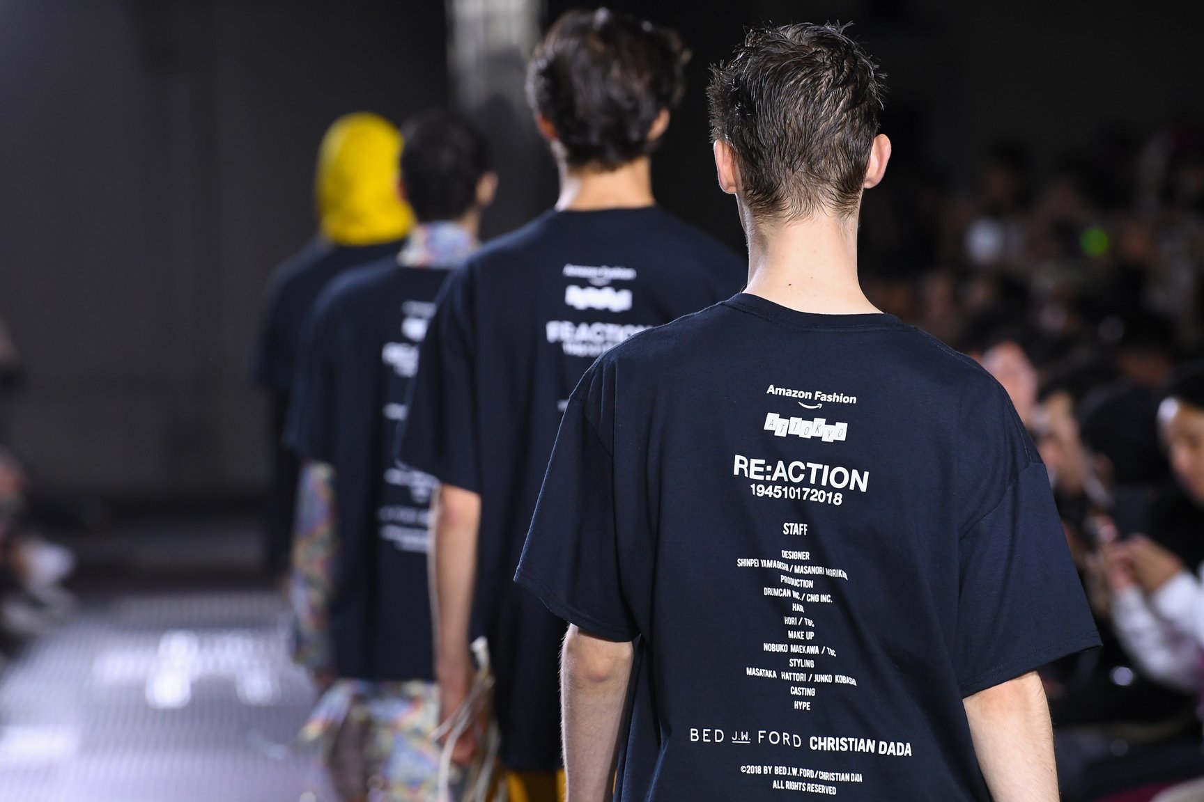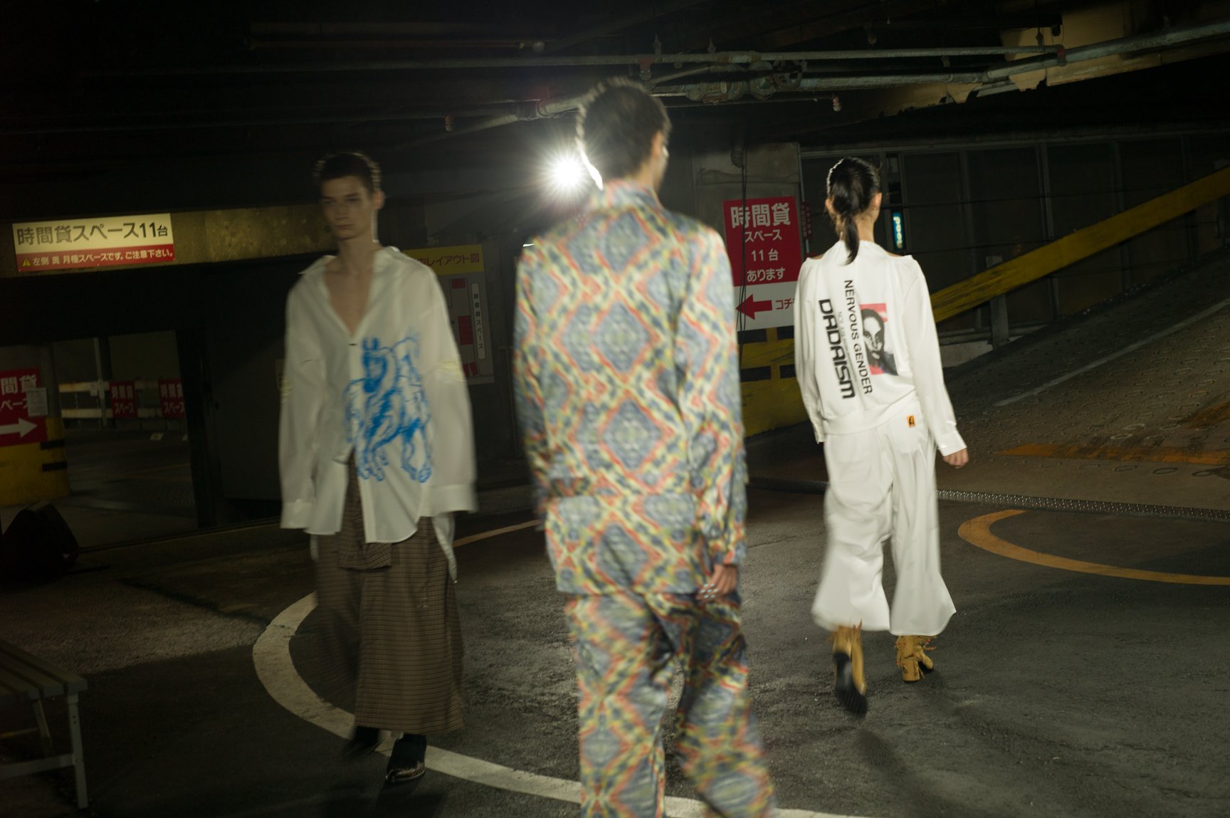(左から)ベッドフォードのルック/クリスチャン ダダルック/フィナーレに登場したデザイナーの山岸慎平と森川マサノリ