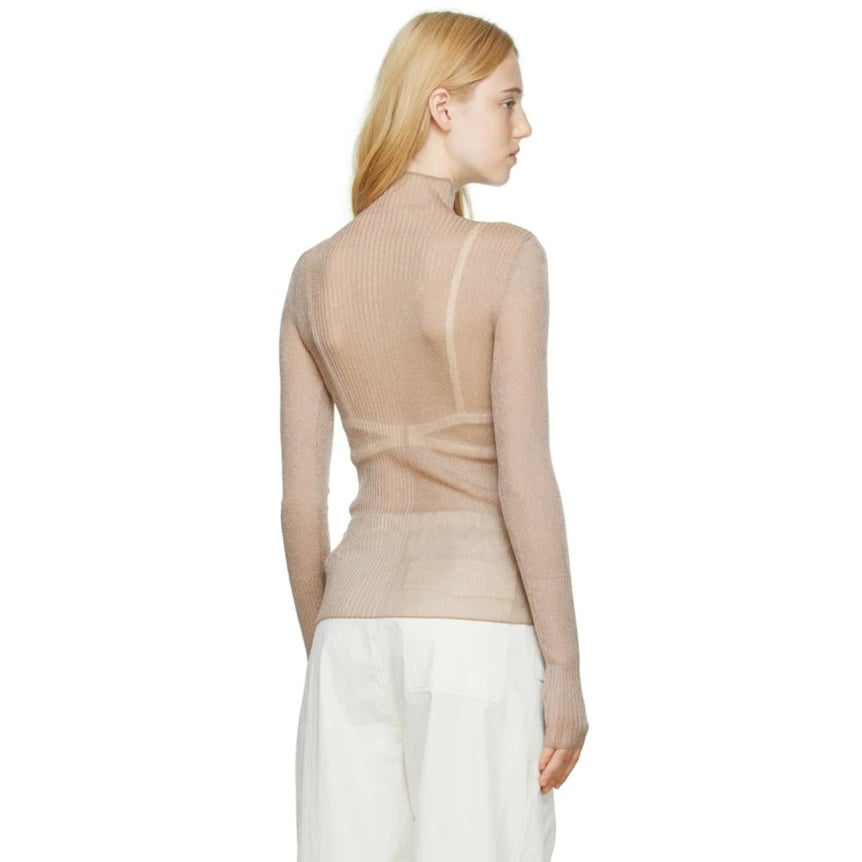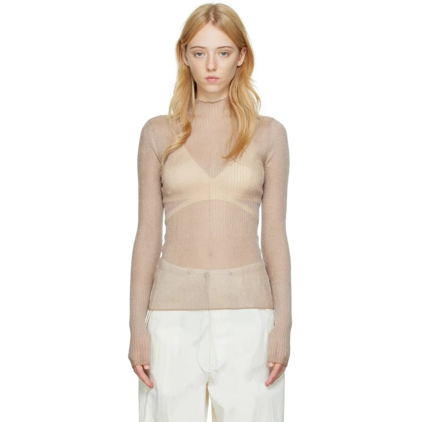 気温が読めない、季節の境目に重宝するこのトップスは「ディオン・リー(DION LEE)」から。インナーが透けるセミシアーなトップスは、ベージュカラーだといやらしく見えずらいのが嬉しいポイント。レイヤードはこの秋も引き続き注目したいスタイルです。