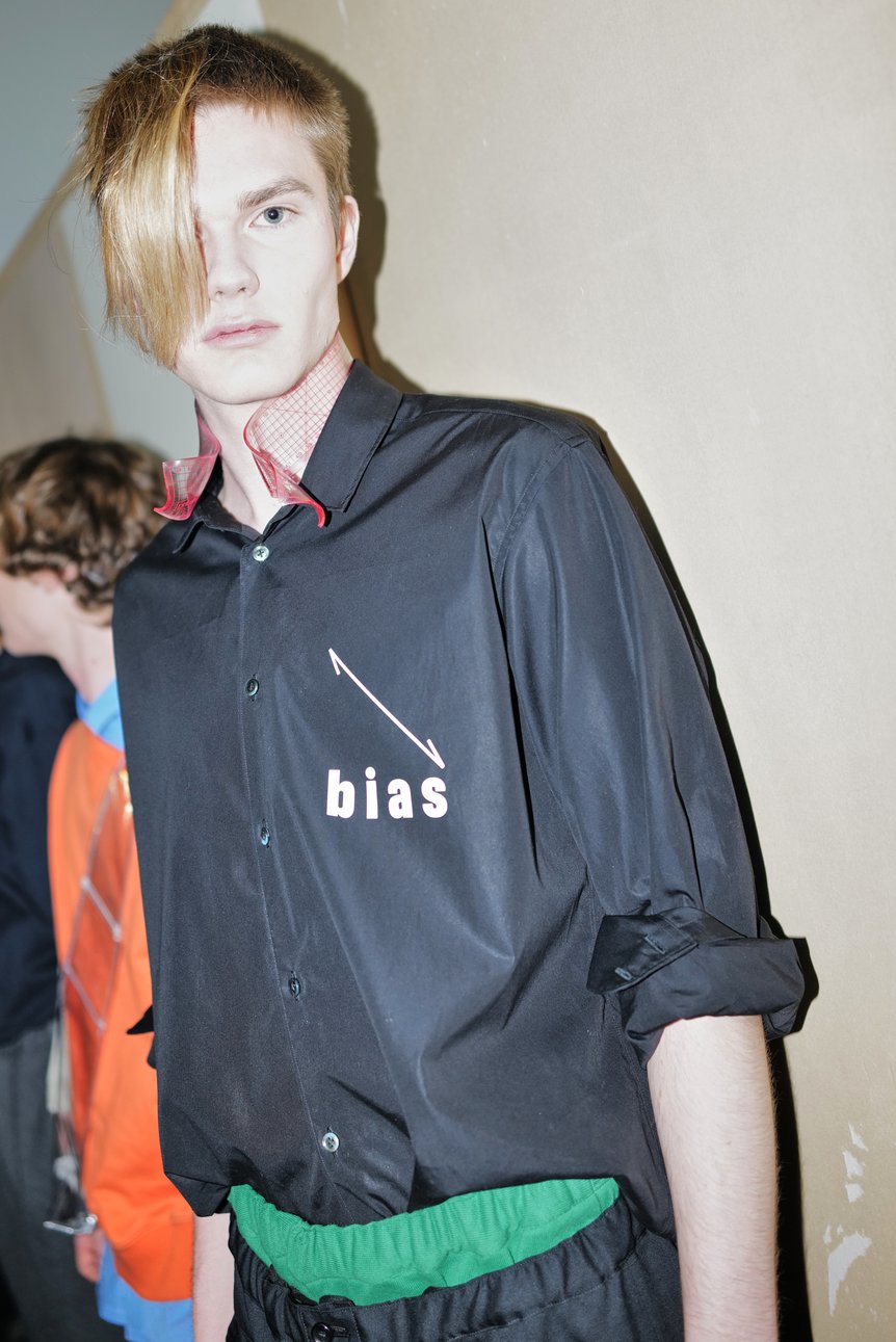 普通は見ることができない服の内側の構造や素材、服が作られる過程、パタンナーをはじめとした作り手の存在やその仕事の痕跡といったものが、遊び心ととともに服へと落とし込まれた今回のコレクションは、受け手に洋服の作り手や製作過程へと意識を向けさせる効果があるという意味でも、「視点の転換」を促していると言えるのではないだろうか。