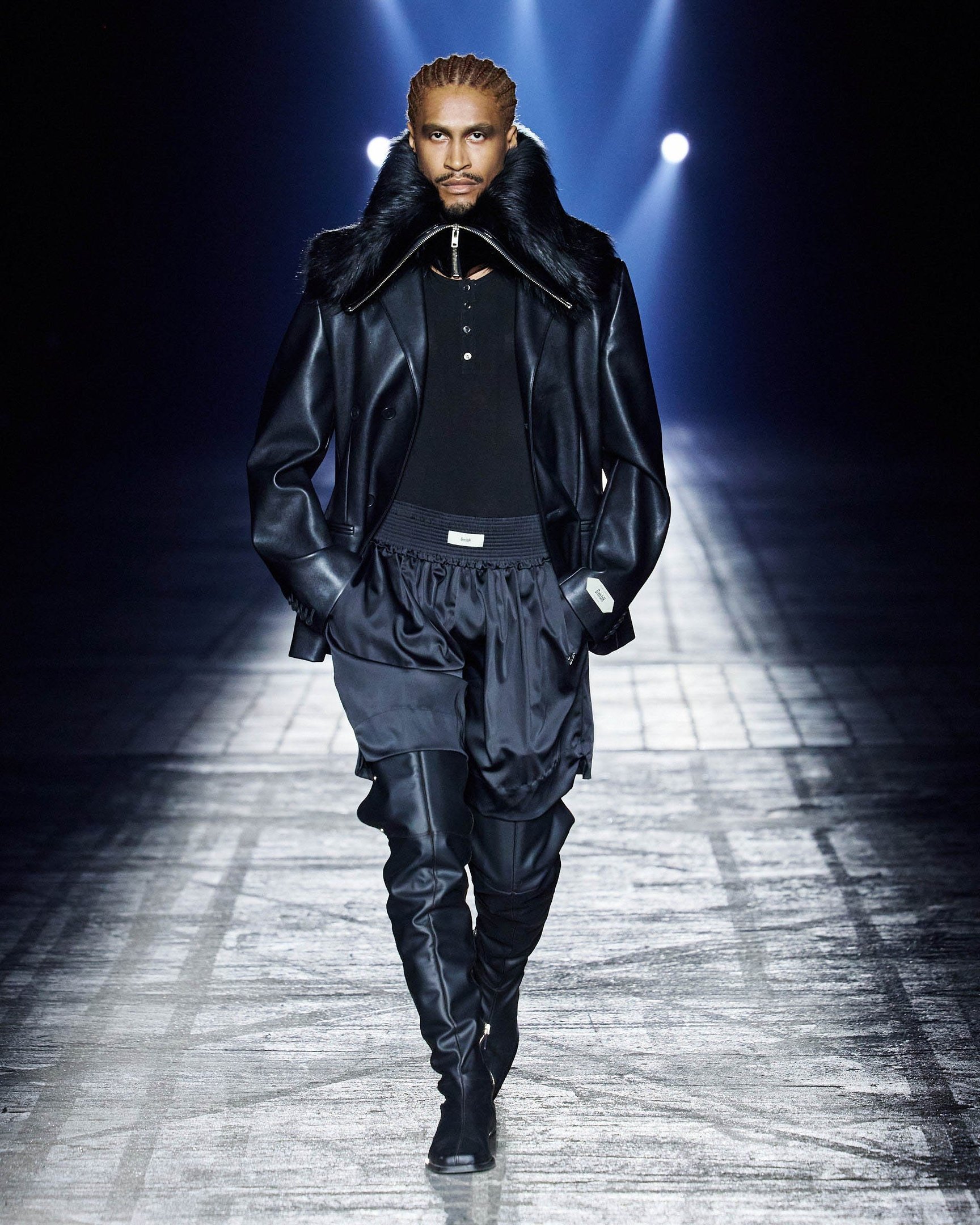 ウガンダ発の「ブジガヒル(BUZIGAHILL)」は、ベルリンファッションウィークを語る上で欠かせない存在になりつつある。大量の古着がグローバルノースから南半球へ流れ込み廃棄される現実を背景に、「RETURN TO SENDER(差出人に返す)」というコンセプトを掲げ、12シーズン目を迎えるブランドを手掛けるのはメゾンでも経験を積んだウガンダとドイツにバックグラウンドを持つボビー・コラド。高島屋との協業プロジェクトを行うなど、来日時には多くのメディアの関心を引き、日本に馴染みもある。2026年秋冬コレクションでは、ウガンダ最大の古着市場で回収された衣服を解体・再構築し、歴史や流通の歪みそのものを服の構造に組み込みながら、洗練されたエレガンスをも感じさせる完成度の高いコレクションに仕上げた。