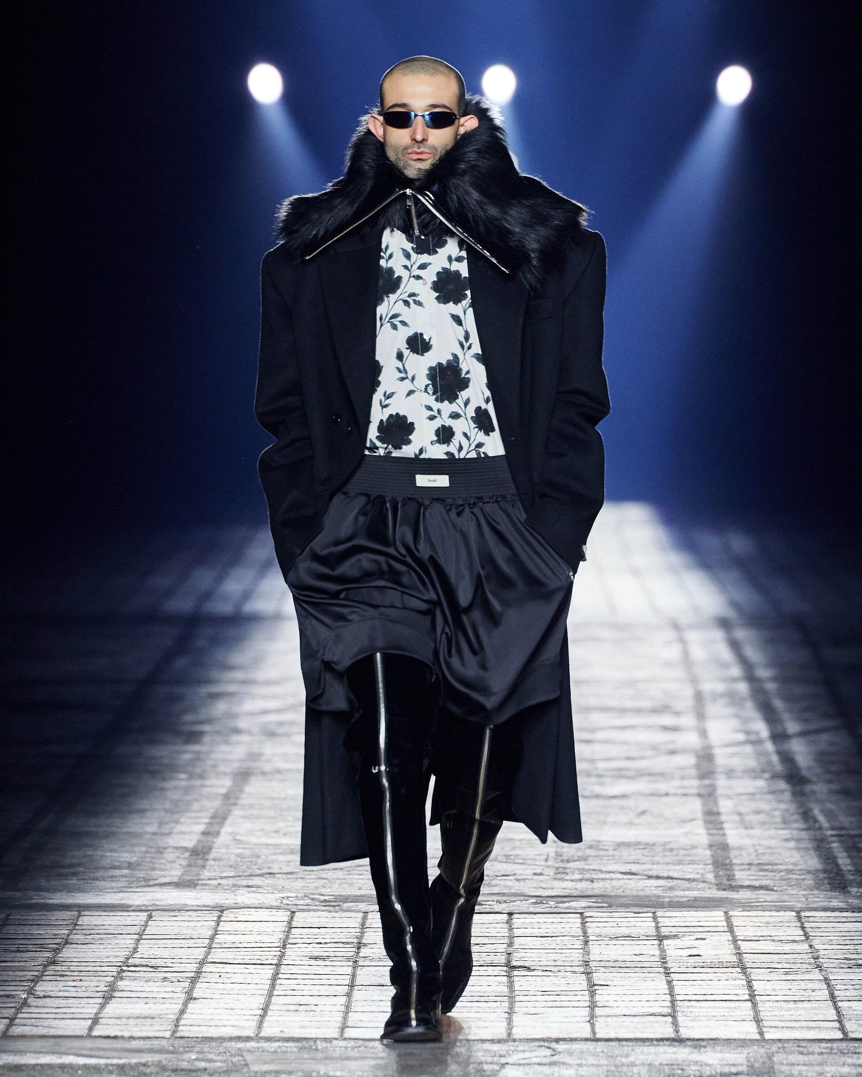 設立10年目を迎えベテランの域に入る「ゲーエムベーハー(GmbH)」は、2024年秋冬シーズン以降、発表の場をパリから移し、ホームであるベルリンに凱旋。ファッションを通じて政治的スタンスや社会メッセージを発信することを辞さず、継続してコレクションを発表している。2026年秋冬コレクション「Doppelgänger」は、戦争や資本主義、恐怖、強欲、抑圧によって破壊されつつある現代社会に危機感を抱き、衣服を「帰属と抵抗のコード」として提示した。