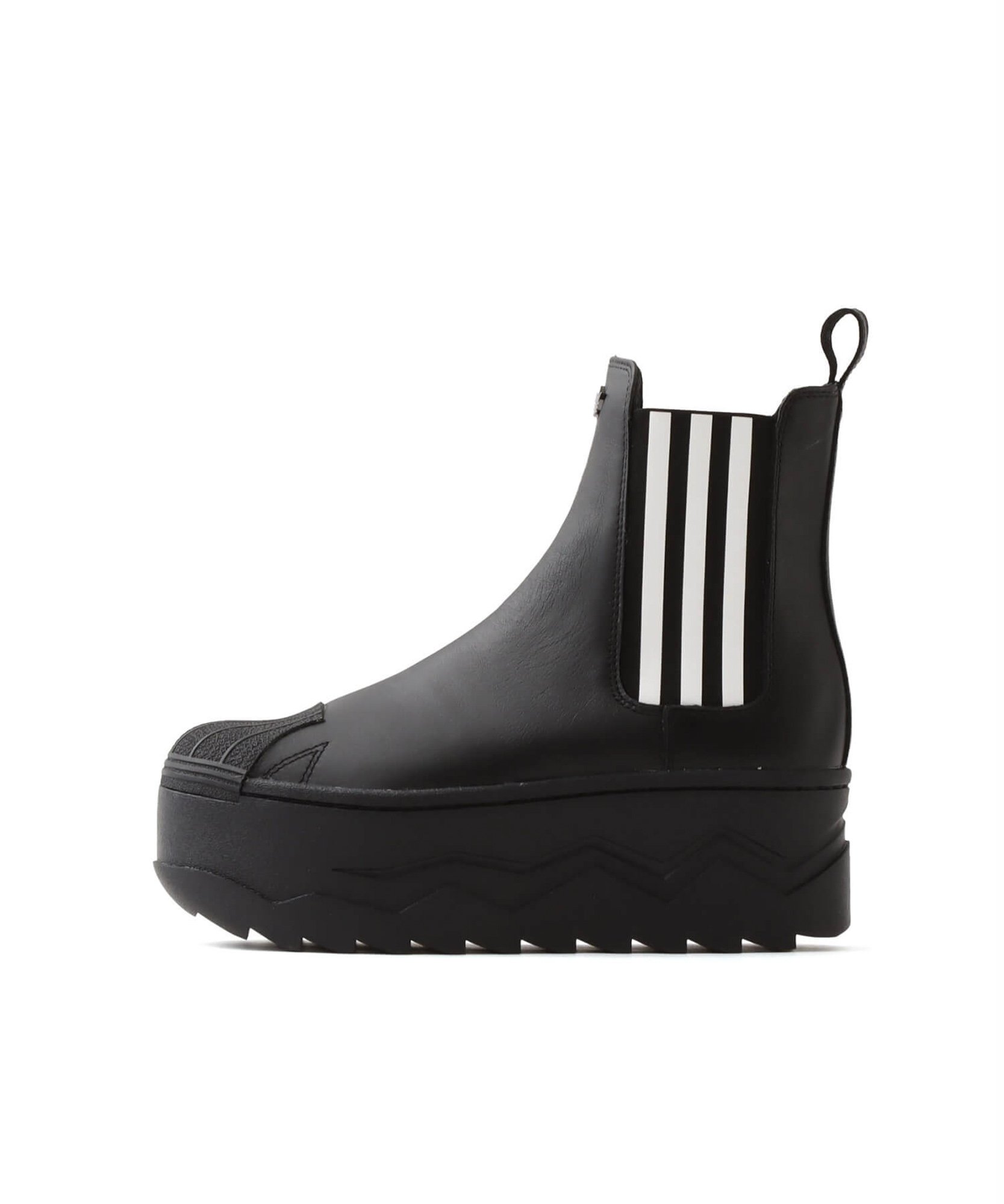 アトモスピンクが11月の注目リリースに選んだのは、「アディダス オリジナルス(adidas Originals)」とのコラボレーションによる「スーパースター プラットフォーム ブーツ(adidas Originals SSTR PLATFORM BOOTS)」。プロダクトのディテールから共同で製作したという同モデルは、サイドにアイコニックなスリーストライプを施し、フロントにはシルバーのトレフォイルロゴをデザイン。スーパースターならではのシェルトゥがポイントとなっている。