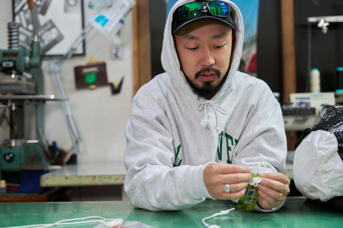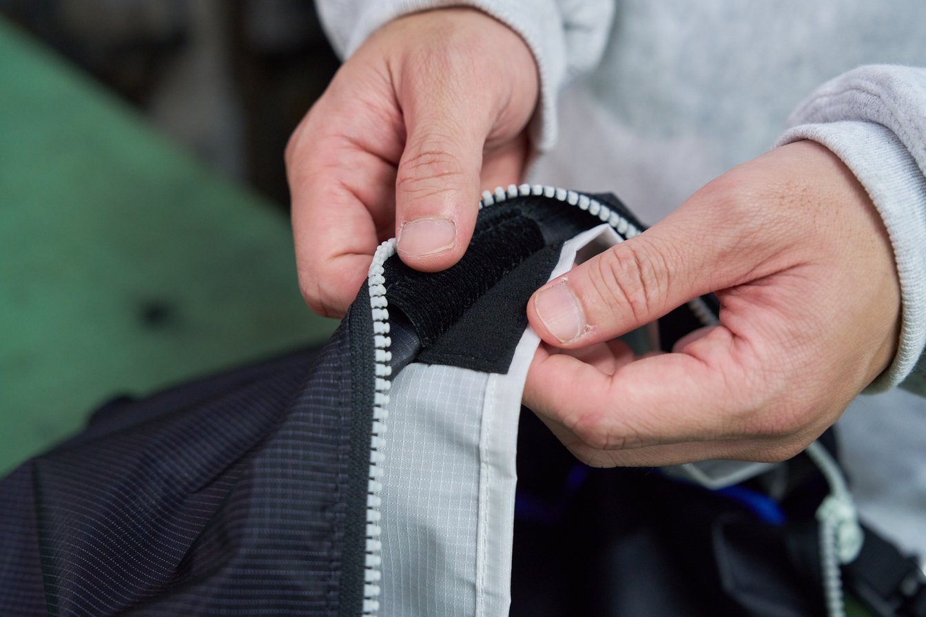 上出:特に僕が気に入っているのは、この独自開発のマジックテープ。一般的なマジックテープは劣化しやすいし、袖に引っかかるのが嫌なんですが、このふわふわのマジックテープは誰も傷つけません。ファスナーは蓄光なので暗いところで光って便利です。他にも色々と、マスプロダクトの製造に関わっていた人ならではのアイデアが詰まっていて、惚れちゃいました。