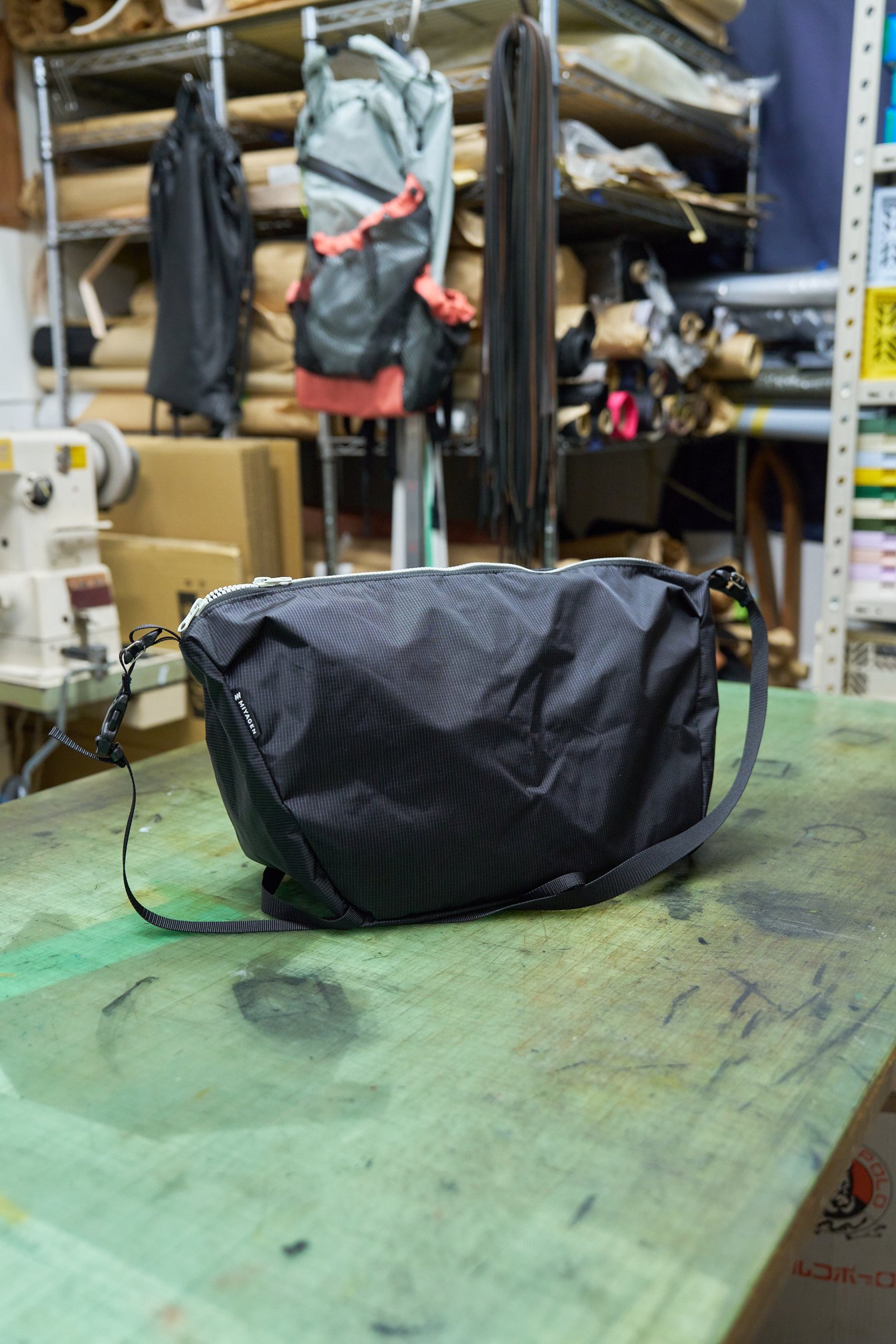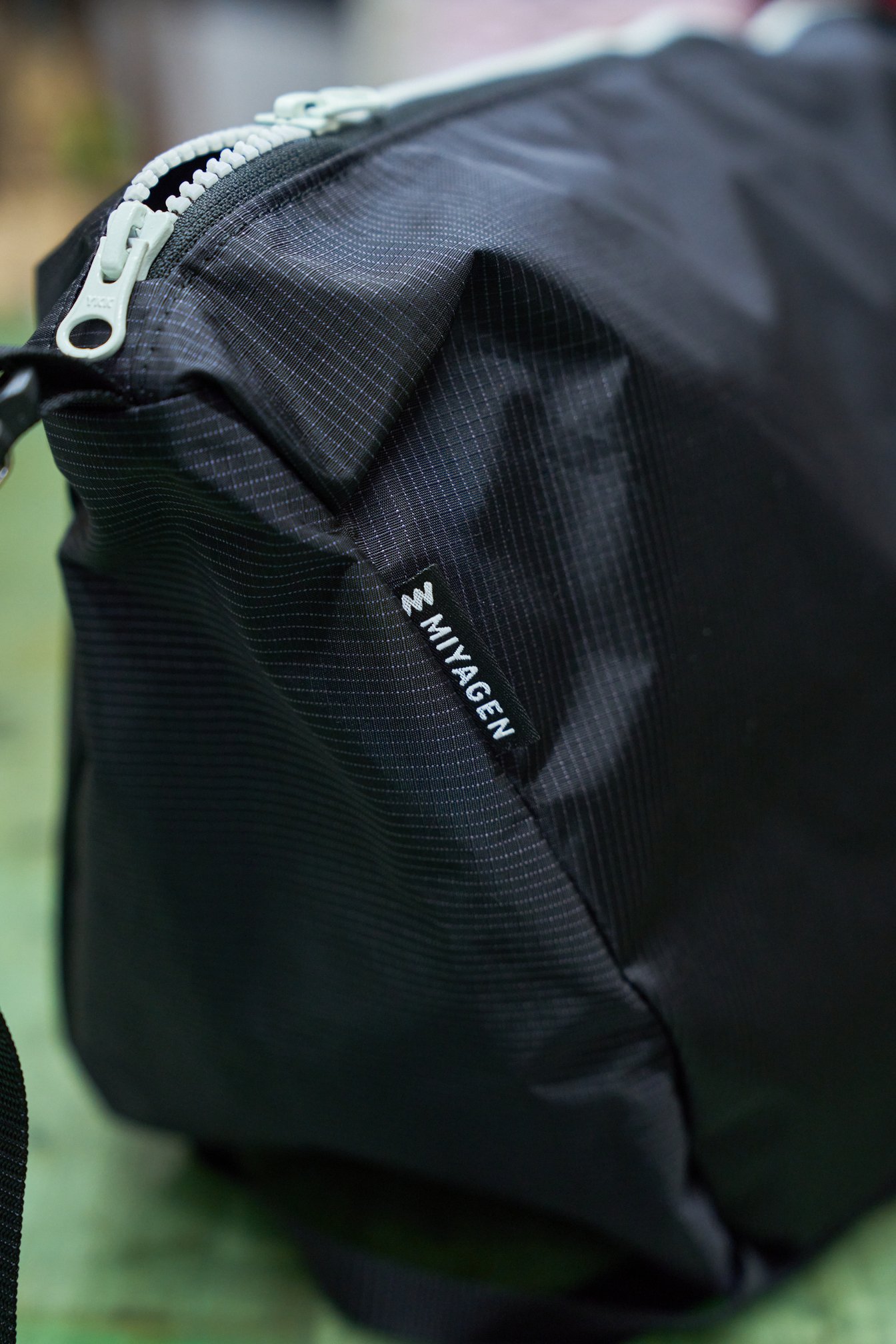 上出:愛知県で創業90年を越える宮源酒店という店の4代目で、某山道具メーカーで技術者をやっていたミヤザキさんが立ち上げた「ミヤゲン(MIYAGEN)」というブランドの10Lのスタッフバッグです。ミヤザキさんは本気でロングトレイルをされていて、実際に山を歩きながら自分のプロダクトをテストして開発されています。工学分野で学んできた方なので、生地から自分で企画していたり、刷新的な構造を実現したり、すごく面白いんですよ。