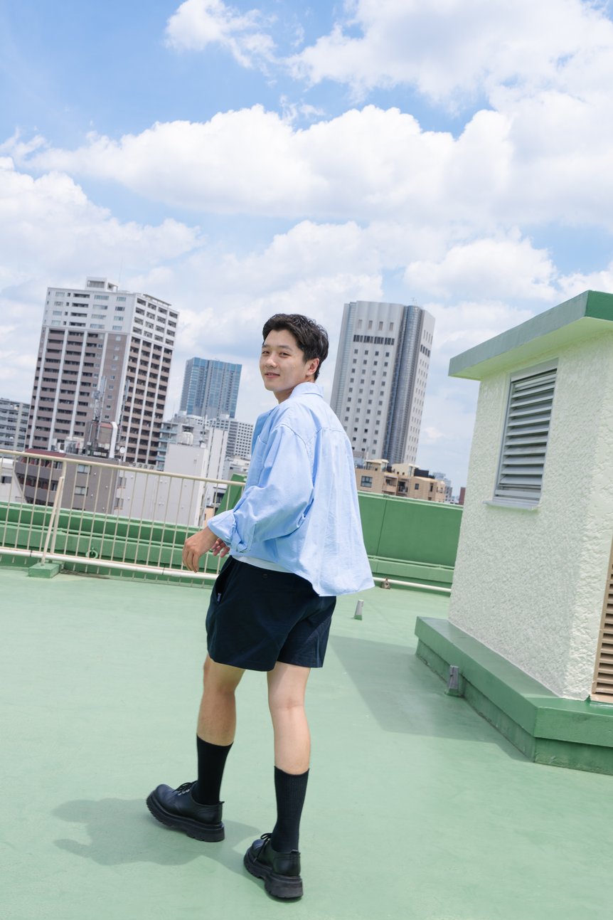 キメすぎないことがこだわりです。基本的にカジュアルだけど、パターンが“普通じゃない”遊びのあるものや、デザイン性があるものが好き。夏のボトムスはショーツを選ぶことが多いので、トップスはクロップド丈を着たり、ワーク系の要素を取り入れたりしてバランスを取っています。