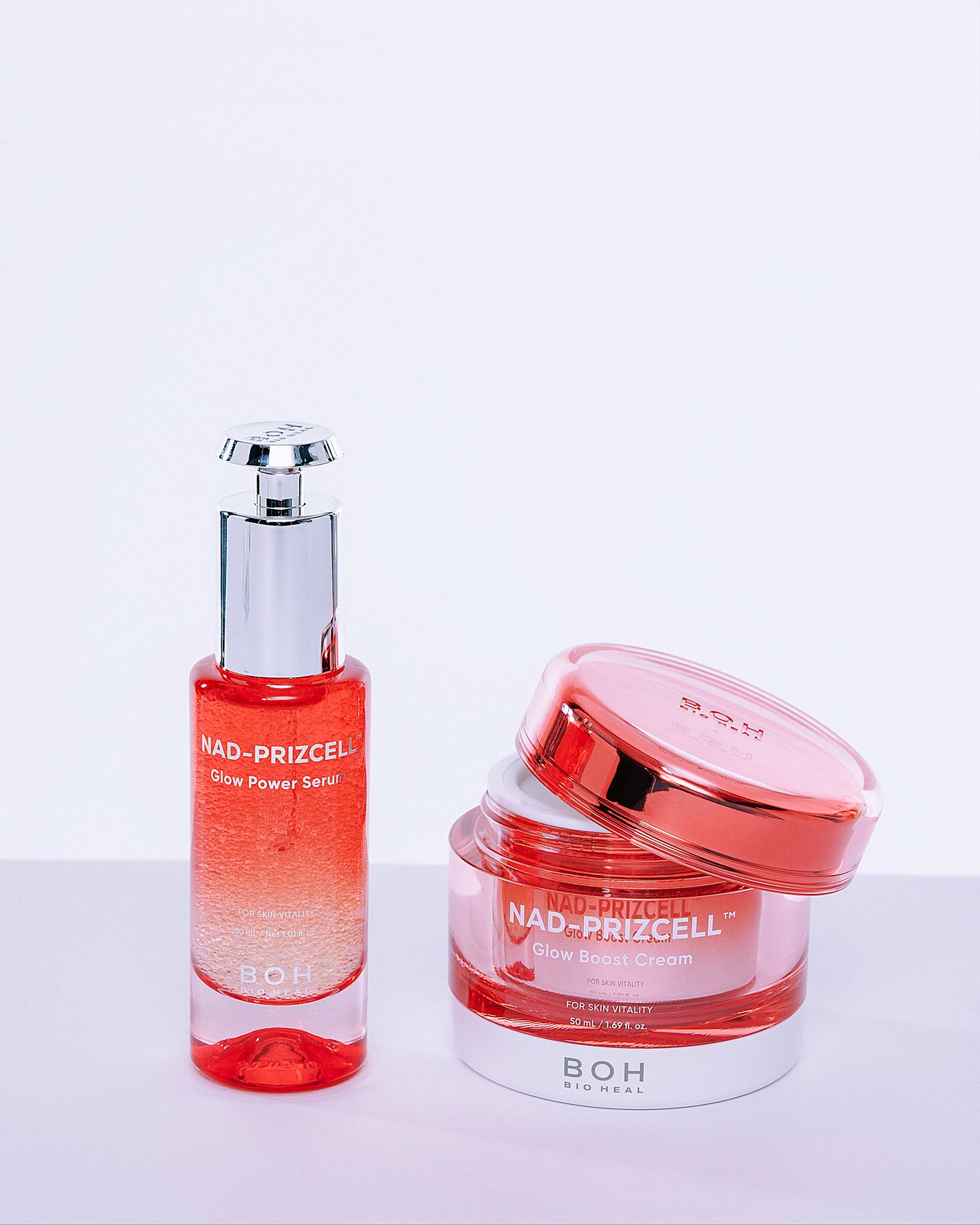 (左から)「バイオヒールボ NADプリズセル™︎ グロウパワーセラム」(30mL 3300円)、「バイオヒールボ NADプリズセル™︎ グロウブーストクリーム」(50mL 3300円)