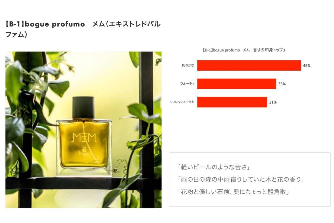 「みんなの鼻」プロジェクトで集めた回答の結果より(「エキストレドパルファム」のメム/3万6300円)