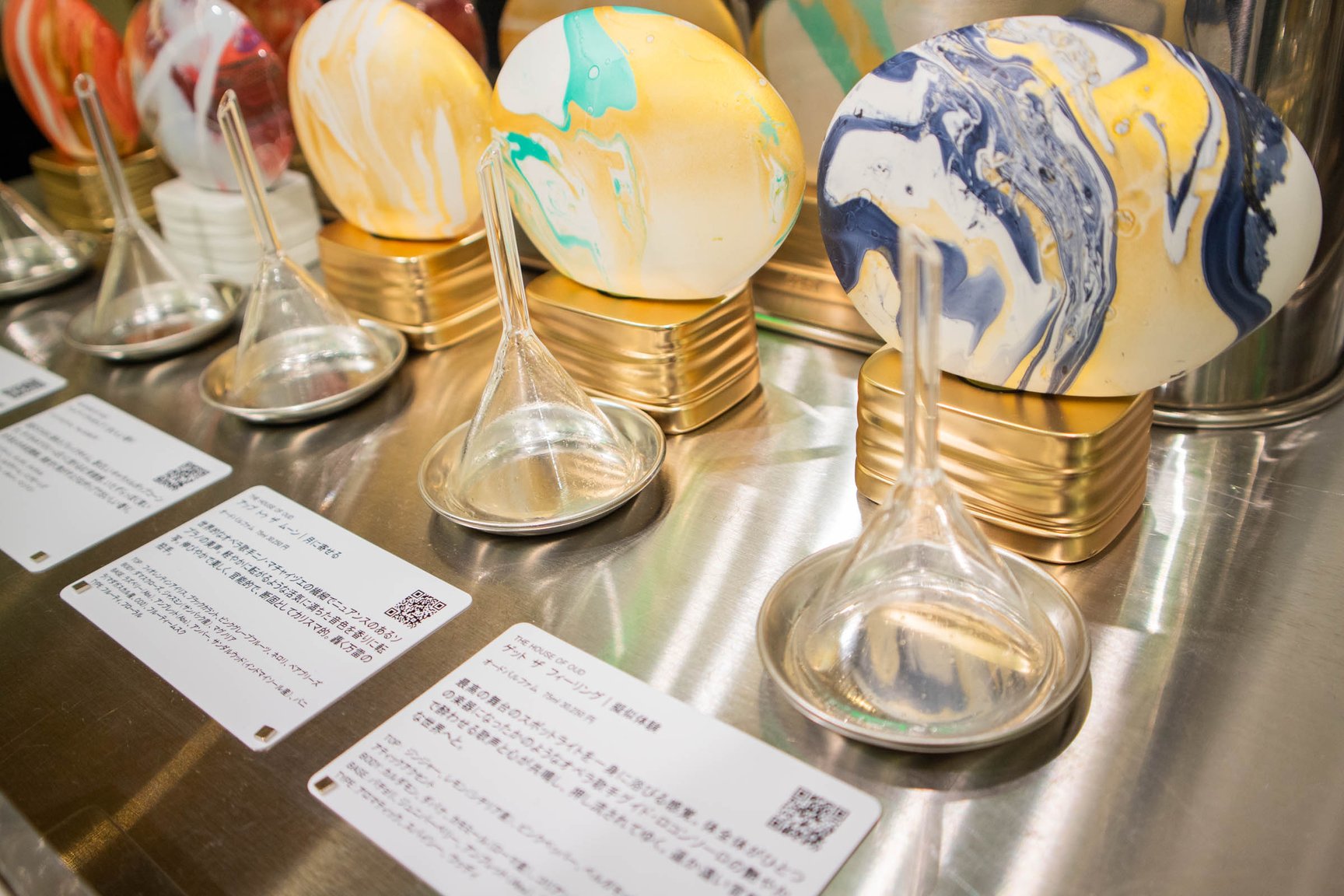 「香水ガチャ」は不定期開催ですが、毎回反響が大きいです。ノーズショップでは出店当初は6ブランドだったところ、今は約40ブランドの600種類ほどに増えたので、「どうやって選んだらいいのか分からない」「多すぎて決められない」という意見も多くなりました。嗅ぎ比べは楽しい分、好みの1点を選ぶのはある意味重圧なんです。そこで「香水を選ぶ」こと自体をエンターテインメント化しようと思い、2018年春に生まれたのが「香水ガチャ」。ランダムに香水が出てくるので運試し的に購入できますし、好きな系統しか買わないお客さんの「嗅がず嫌い」を解消して新しい好みを発見するきっかけにもなります。