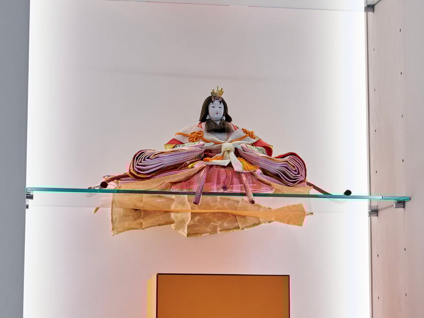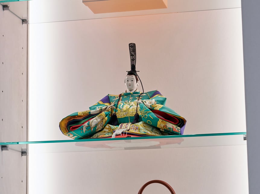 オリジナル・バーキンの展示イベントの会場となったALLU OMOTESANDOでは、バーキン以外にもさまざまな非売品が展示されている。写真はかつてエルメスが販売していたという雛人形(非売品)。