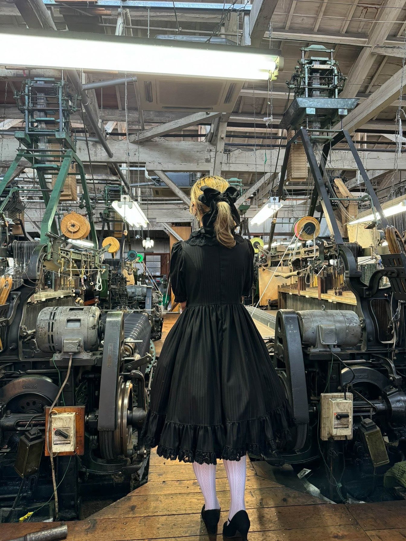 オリジナルで開発した生地はもっと値段が上がりますが、工場の既存品番のスーツ生地でも、名古屋のテーラーさんでスーツにしようとすると大体15万円くらいになるような品質の生地を使っています。尾州ロリィタはスーツの倍量の生地を使っているのに、15万円のものを8万円で売っていると思っていただけたら……。かなり切り詰めて、手が届きやすい価格に、という思いで頑張っています。
