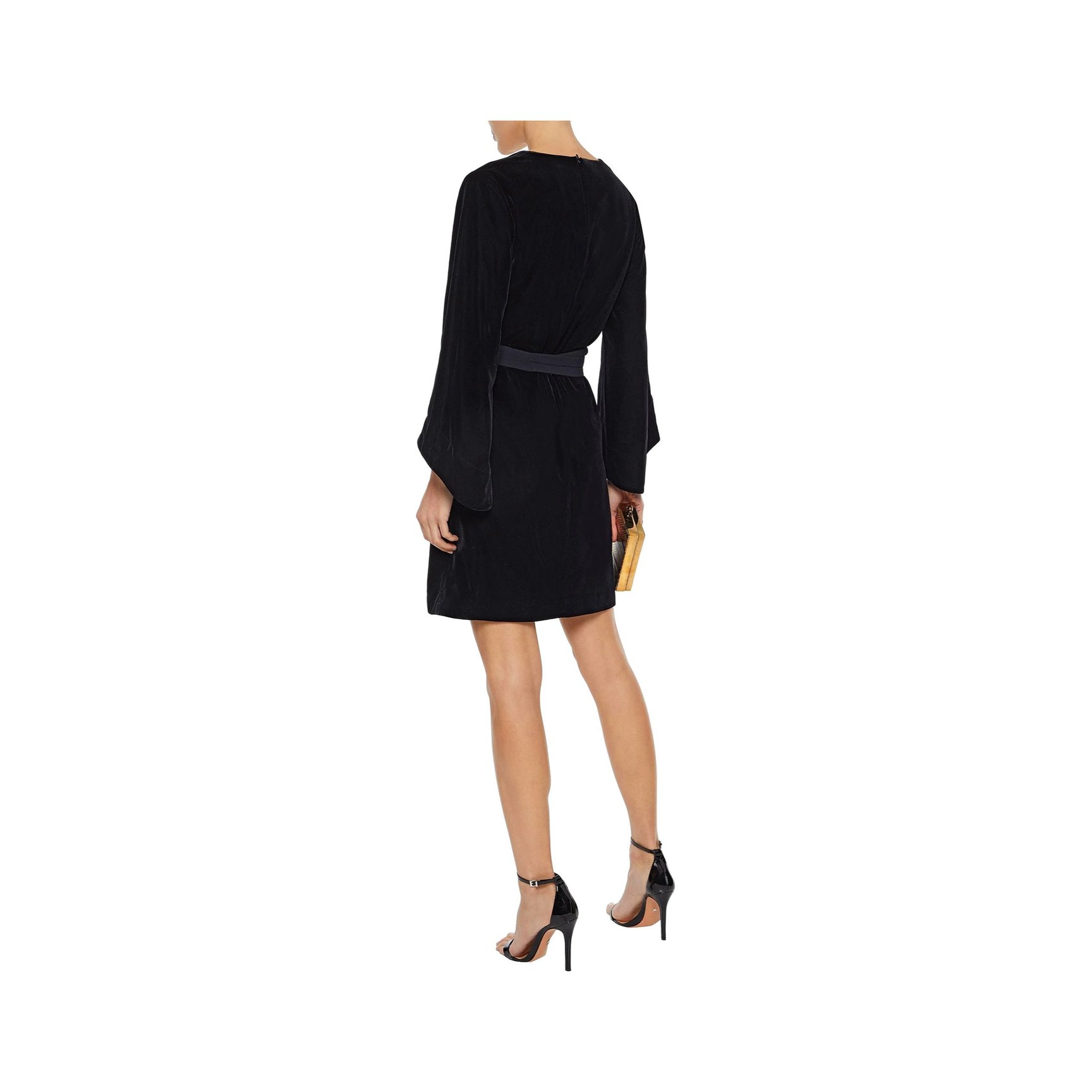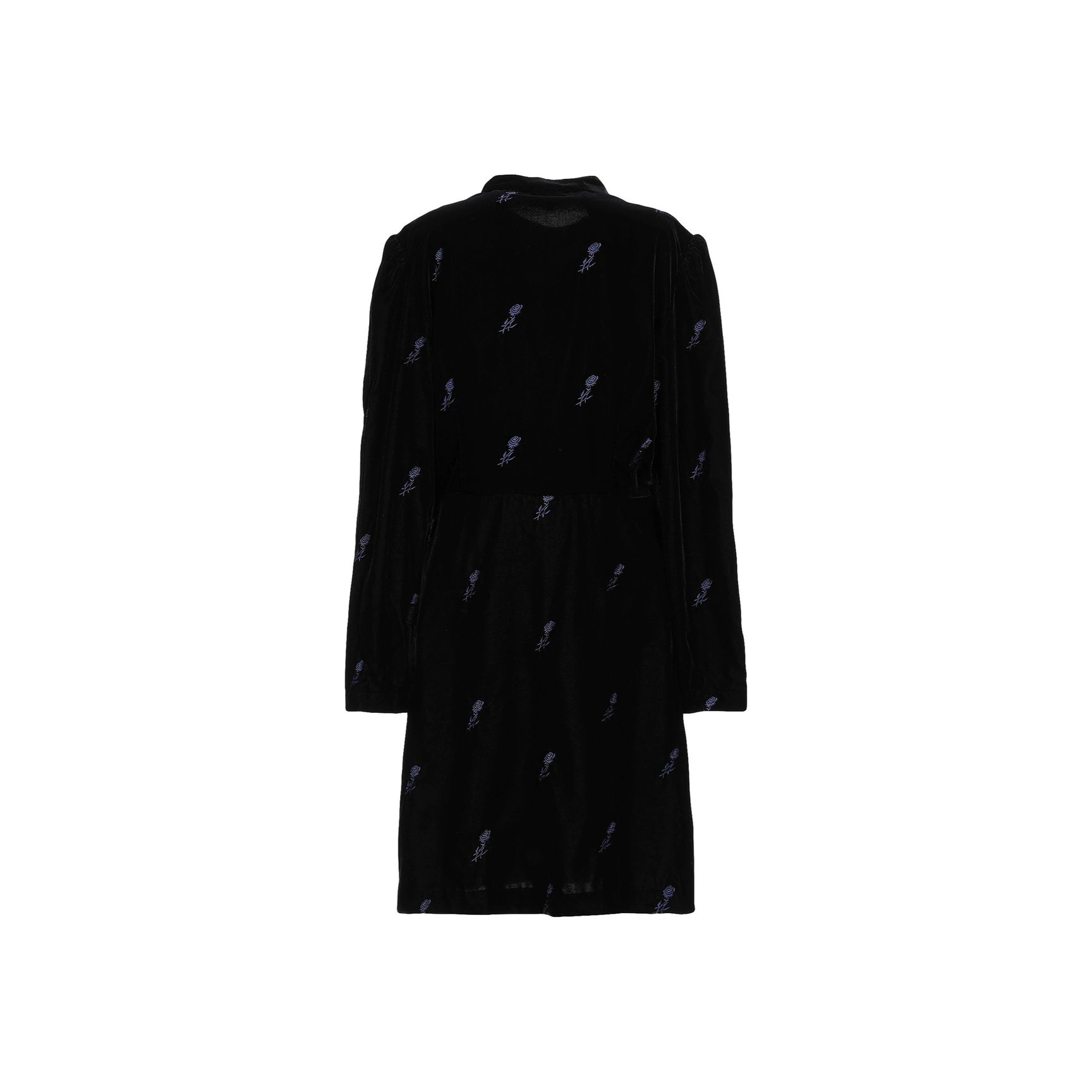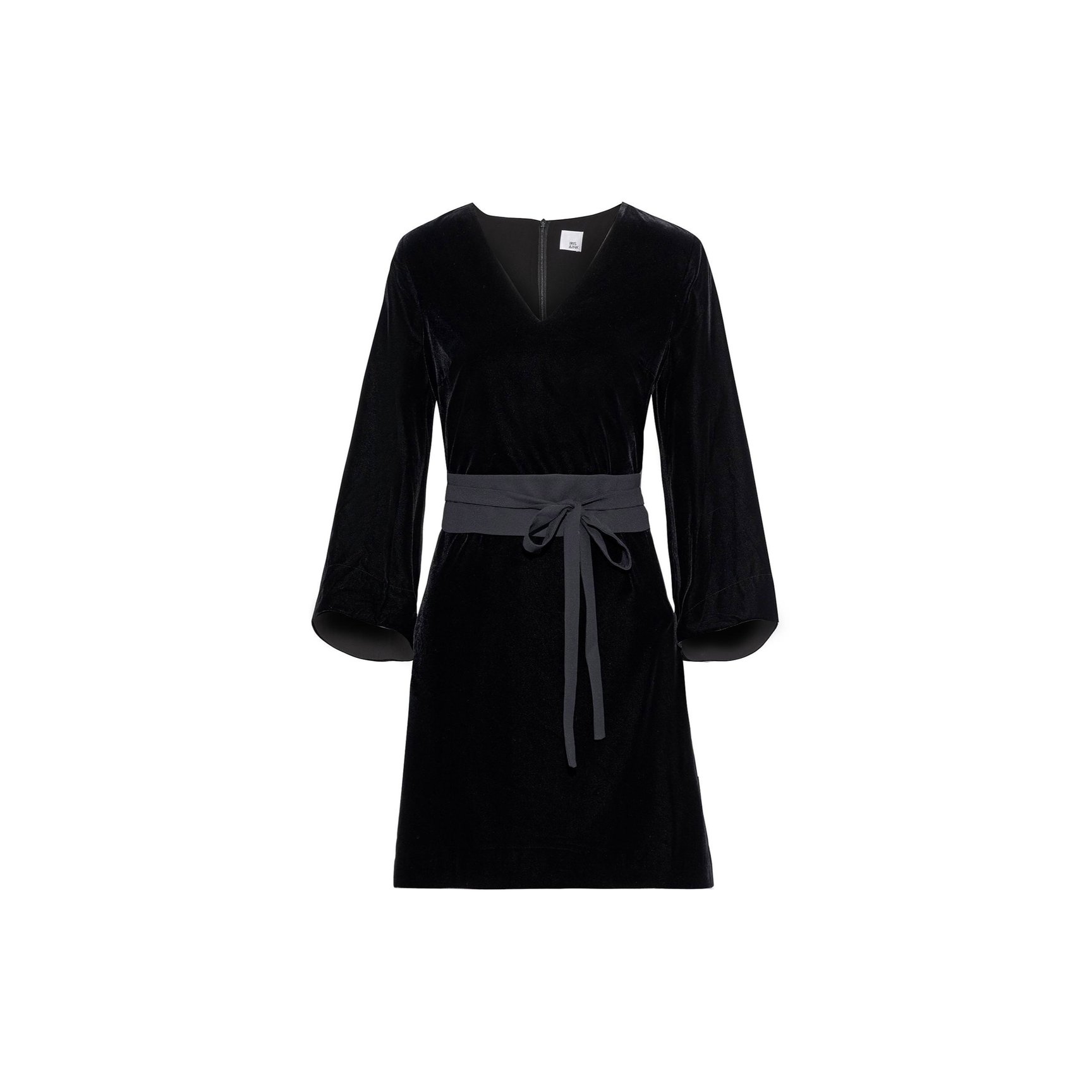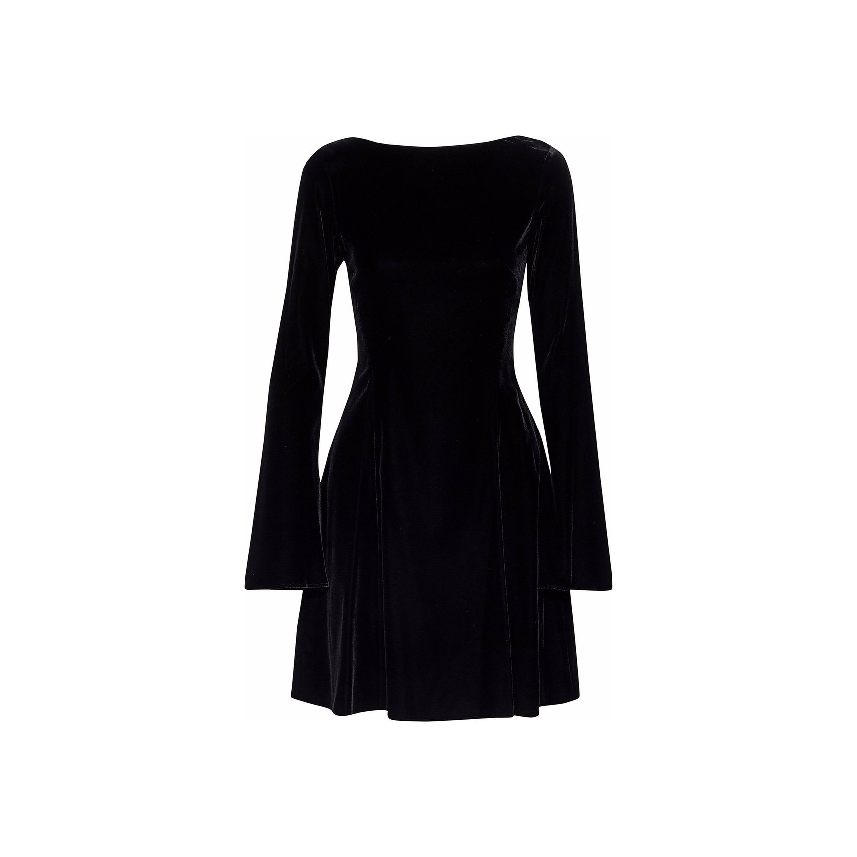 パリ発「メドモワゼル(Mes Demoiselles)」のベルベットワンピースは、ギャザーの入った七分袖とフレアシルエットのミニスカートによる適度なメリハリがポイント。Vネックのネックラインで程よく肌見せも。