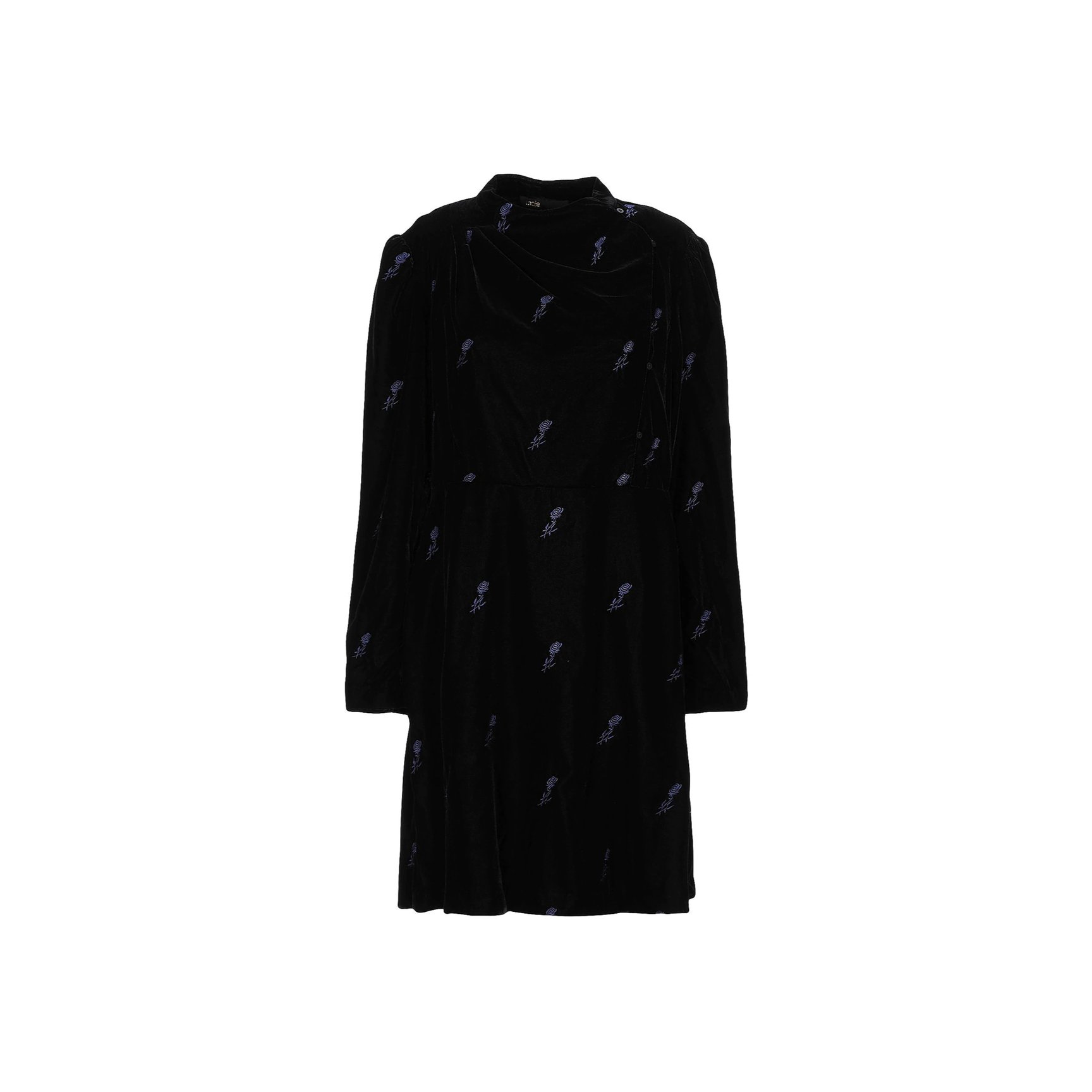 パリジェンヌ御用達ブランド「マージュ(Maje)」のスタンドカラーワンピースは、Aラインのシンプルさに、全面にあしらわれた小さなローズの刺しゅうがアクセント。フラワーモチーフも、落ち着いたブルーでさりげない甘さに。