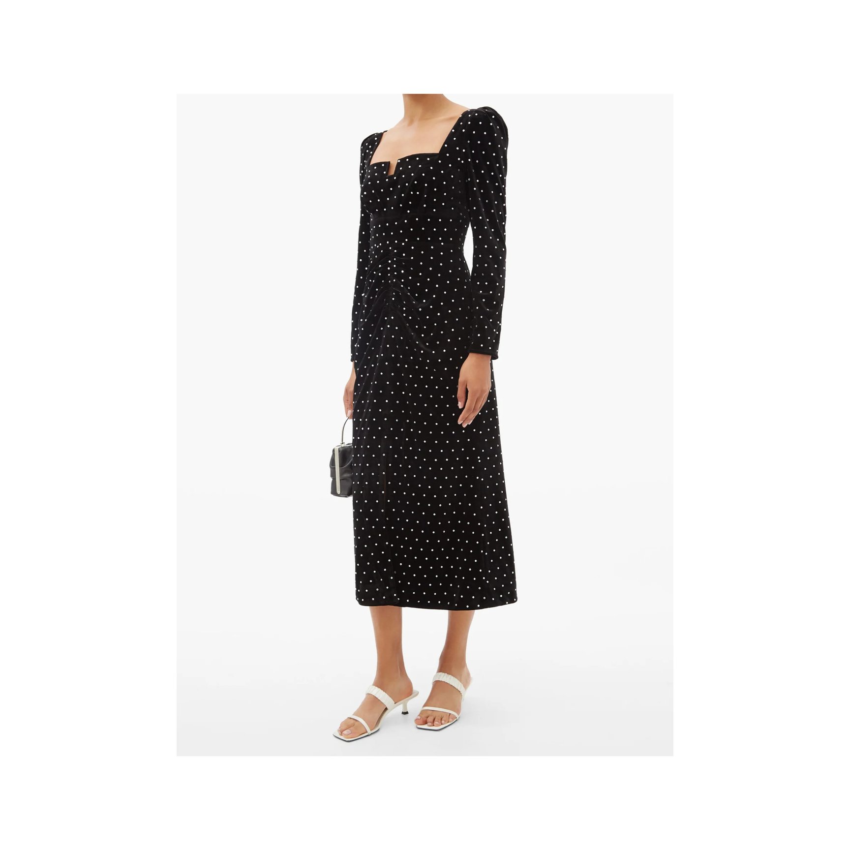 「セルフ ポートレイト(Self-Portrait)」のミディ丈ワンピースです。輝くクリスタルが散りばめられていますが、スクエアネックや端正なフォルムでモダンな雰囲気に仕上がっています。 ほどよいフィット感でボディラインを綺麗に見せてくれます。