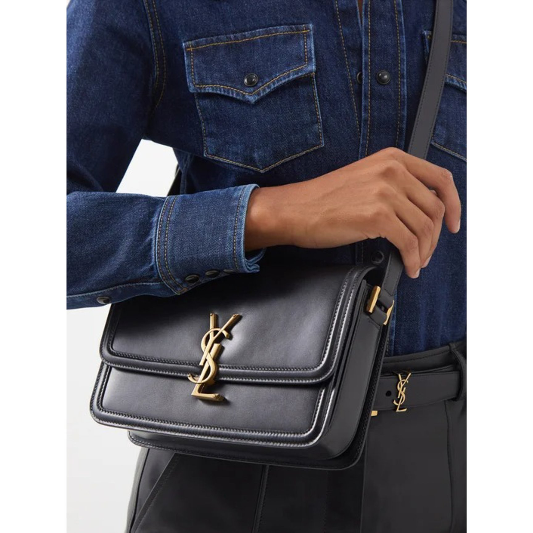 「サンローラン(SAINT LAURENT)」からは、「ソルフェリーノ」バッグをピックアップ。スムースレザーのやや光沢感のあるボディに、シグネチャーであるアンティークゴールドのYSL金具が上品なアクセントをもたらします。