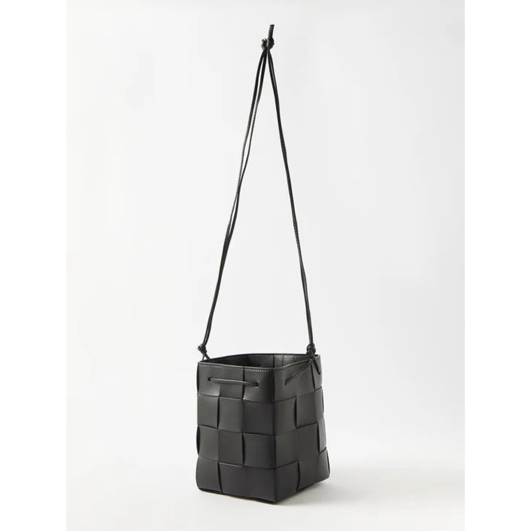 「ボッテガ・ヴェネタ(BOTTEGA VENETA)」からは、アイコニックなイントレチャートデザインのバケットバッグを。コロンと立体感のあるスクエアフォルムで、ほんのり個性が感じられます。