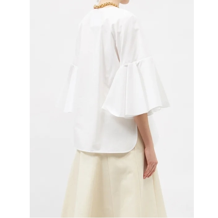 ふわっと広がる袖に魅了される「ジル サンダー(JIL SANDER)」のブラウスは、フェミニンな袖と首元を綺麗に魅せる深めのVネックで洗練された印象に。ゆったりとした身頃のサイドにはスリットが入り、リラックス感のあるサイジングでデイリー使いがしやすいのも嬉しいポイント。