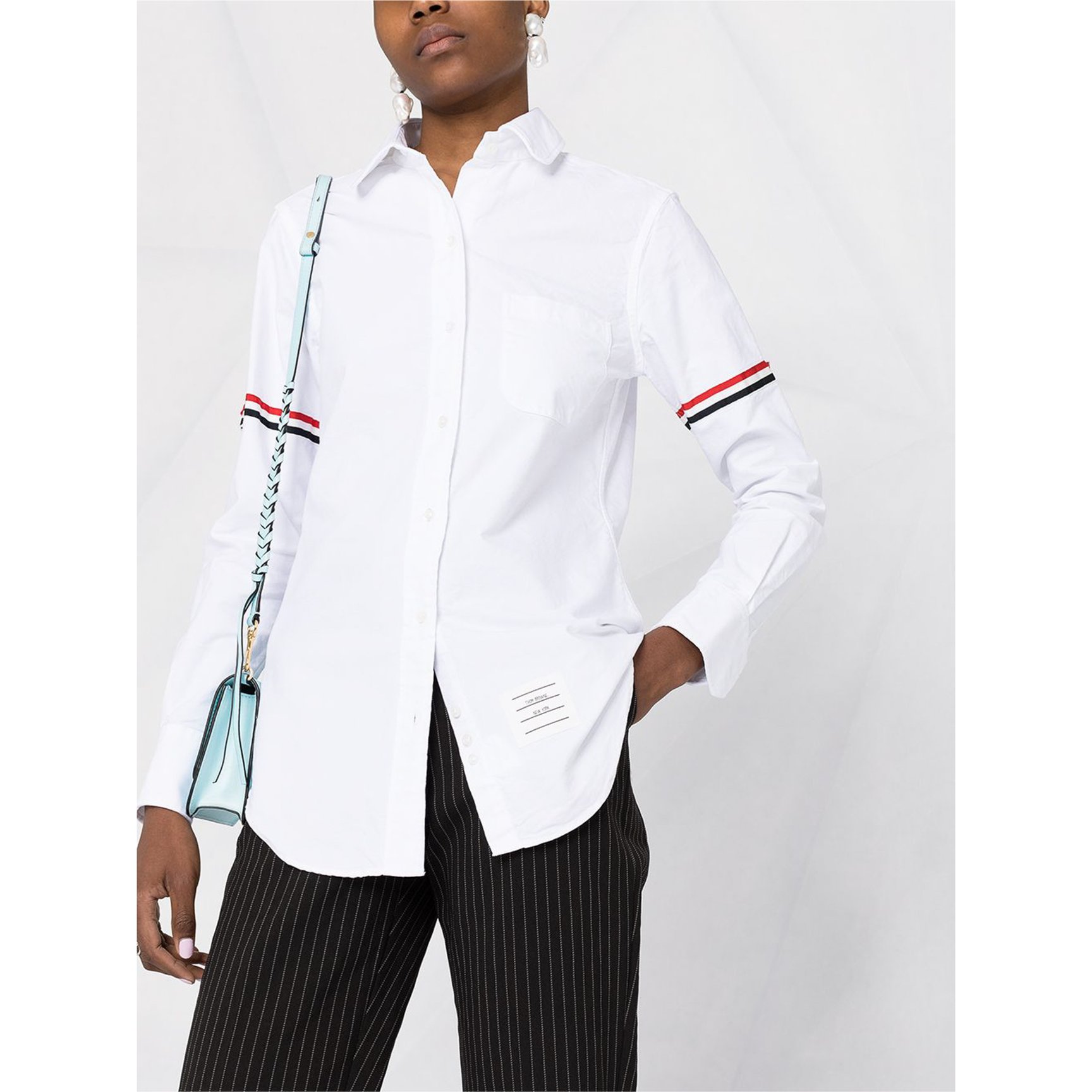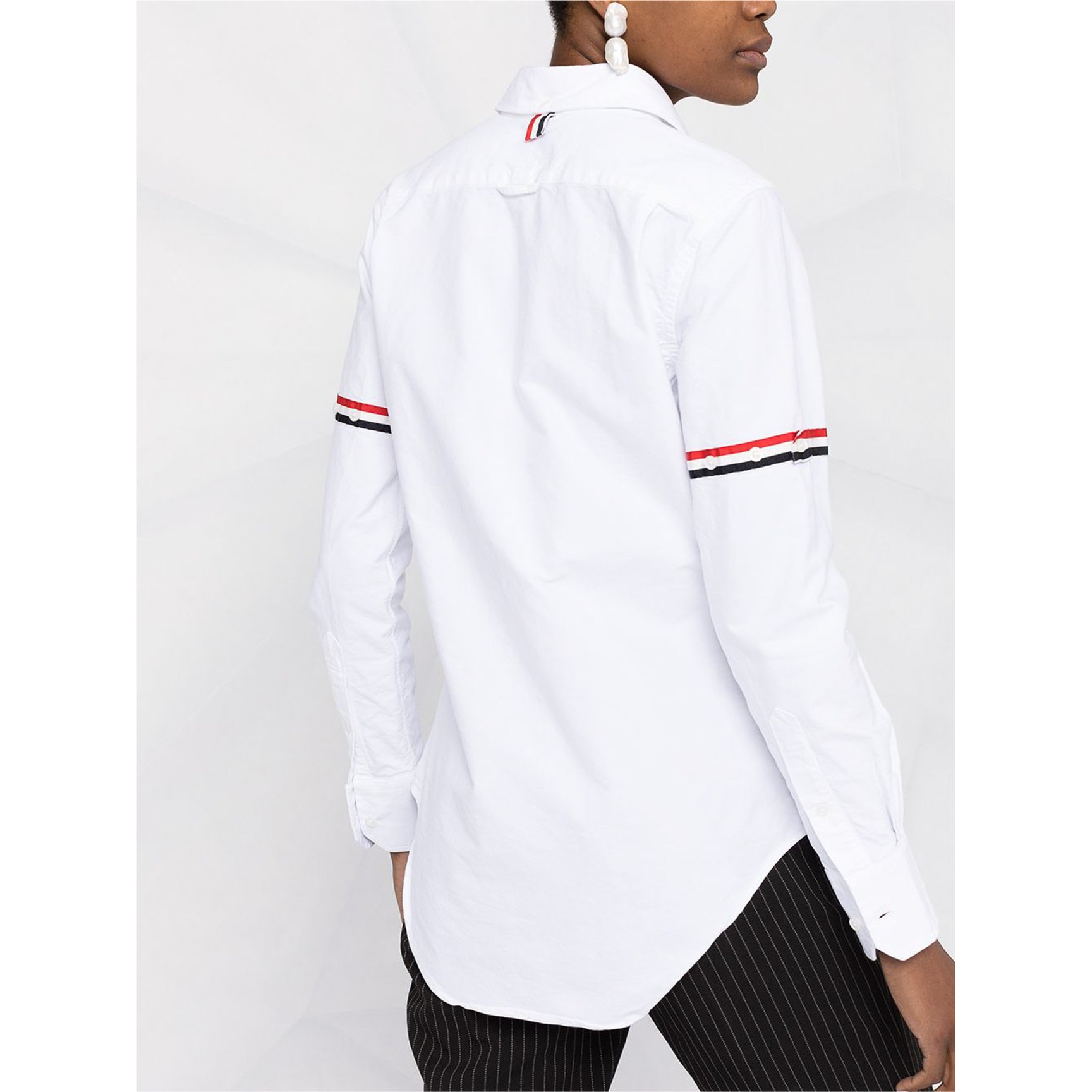 シグネチャーラインをポイントに散りばめた「トム ブラウン(THOM BROWNE)」の一着に注目。程よくフィットするオックスフォードシャツに丸みを帯びた襟、アクセントとなるアームバンドとトラッド感溢れるデザインで、正統派スタイルを楽しんでみては?