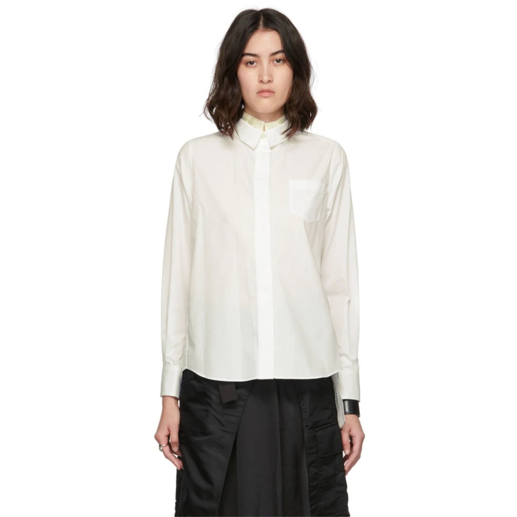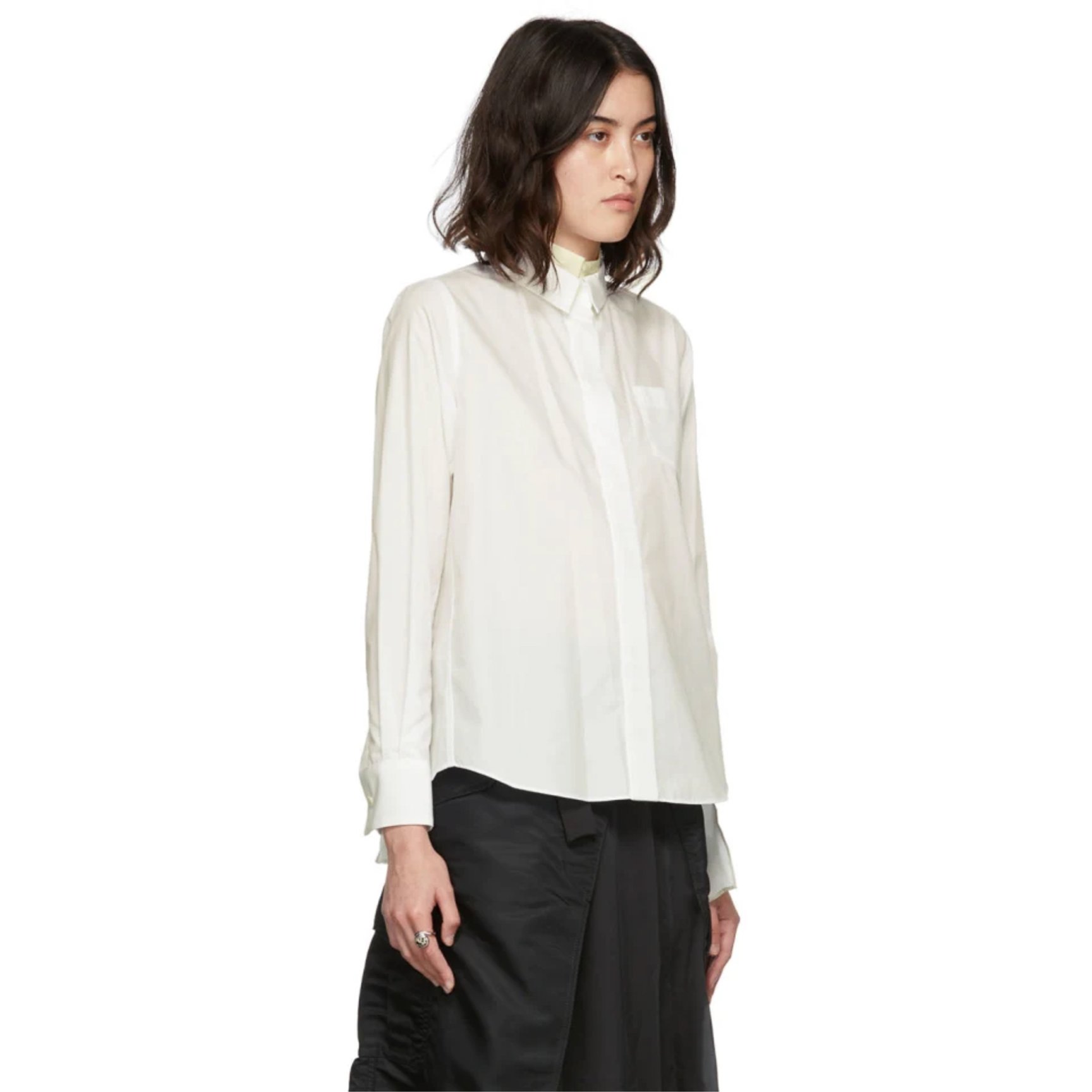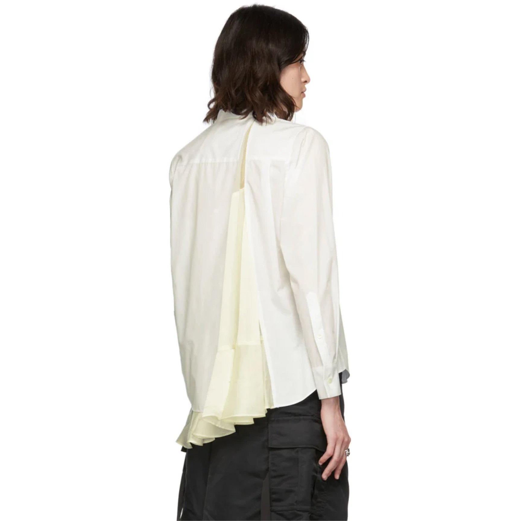 細部にまでこだわったディテールで日常服をアップデートする「サカイ(sacai)」から、ミニマルなシャツの襟に淡いイエローのパネルを合わせたシャツをピックアップ。一見端正なデザインと思いきや、大胆にカットアウトした背面とのコントラストでブランドの遊び心を感じさせる一着に。