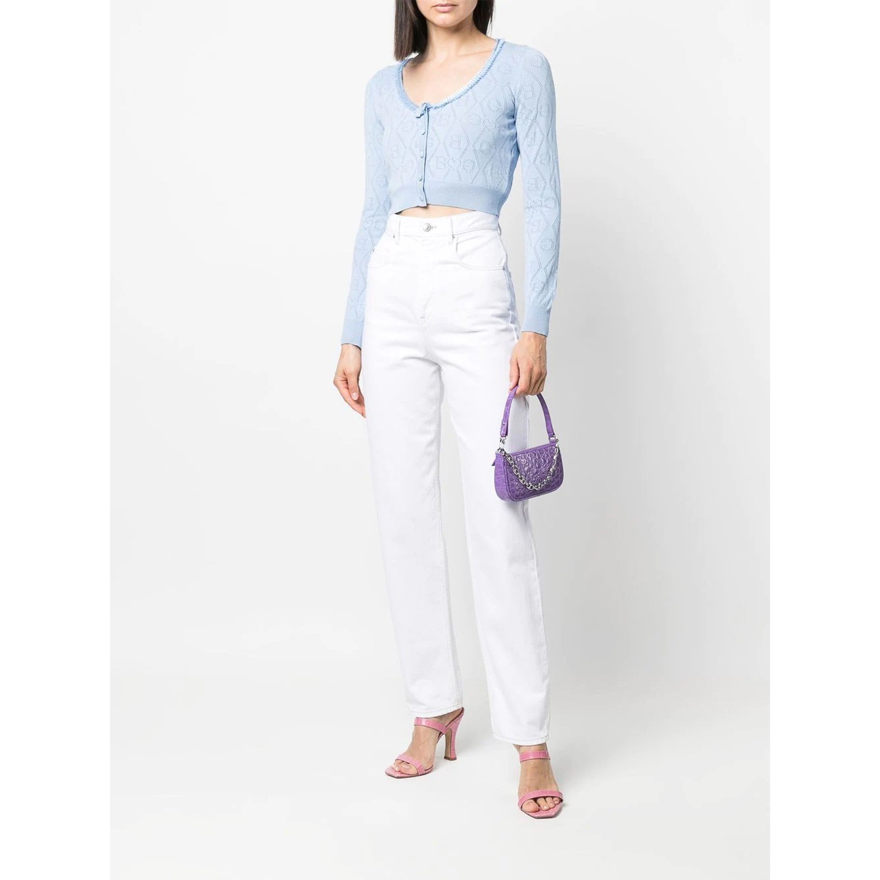 暑い夏でも室内はひんやりと寒い時があります。そんな時に役立つのが薄手のニットカーディガン。「ブルーガール(Blugirl)」のニットカーディガンは、明るいブルーカラーが涼しげな印象を与えてくれる1着。ポップなデザインと、フロントの小さなリボンがワンポイントです。
