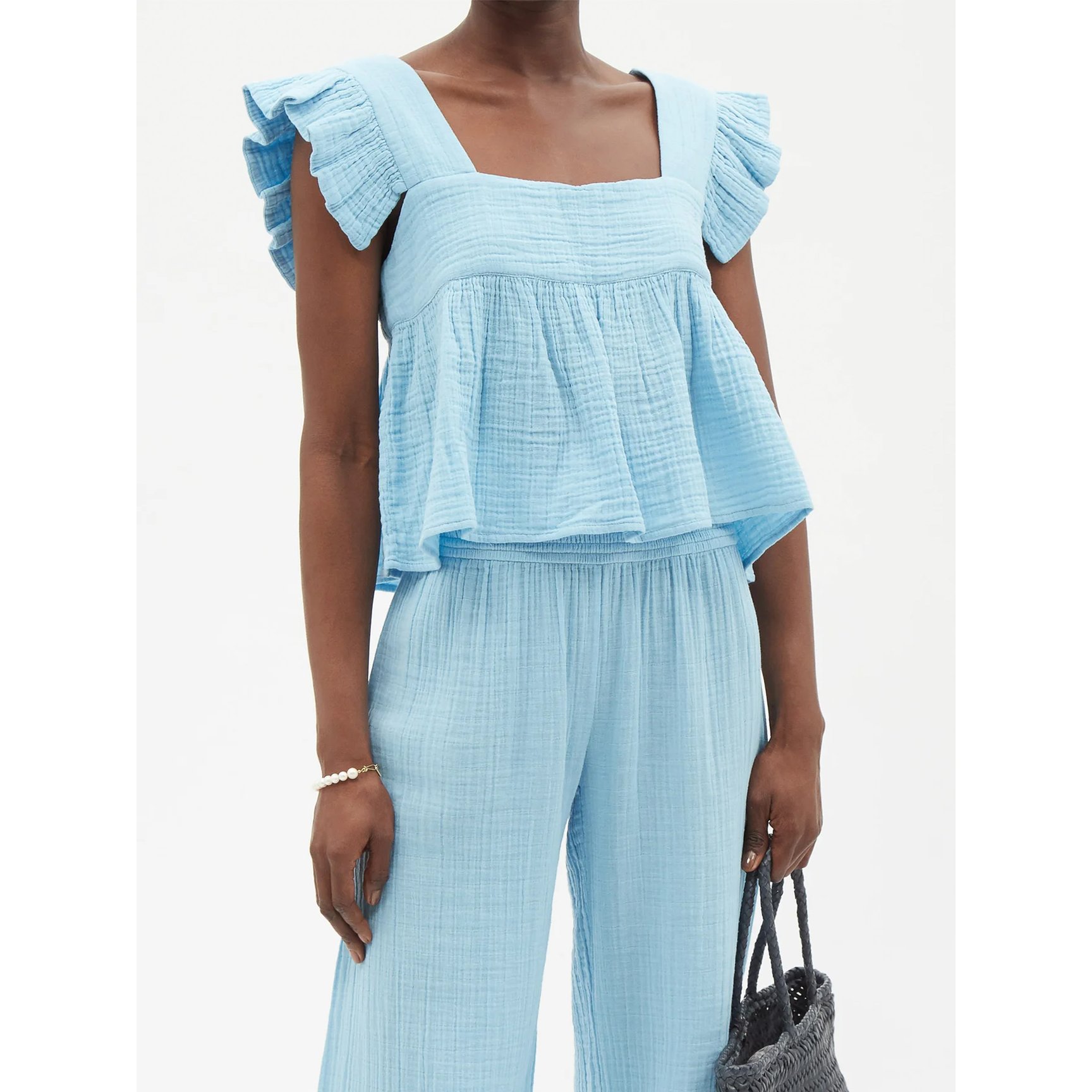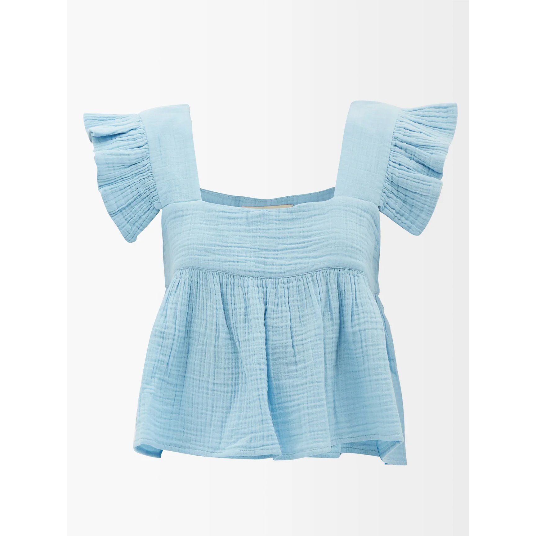「アナーク(Anaak)」のテクスチャードコットントップは、モロッコの美しい色使いに着想を得た繊細なベビーブルーカラーがあしらわれた1着。肩部分のフワッとしたシルエットが、パンツスタイルに合わせてもエレガントかつガーリーな印象を引き立ててくれます。