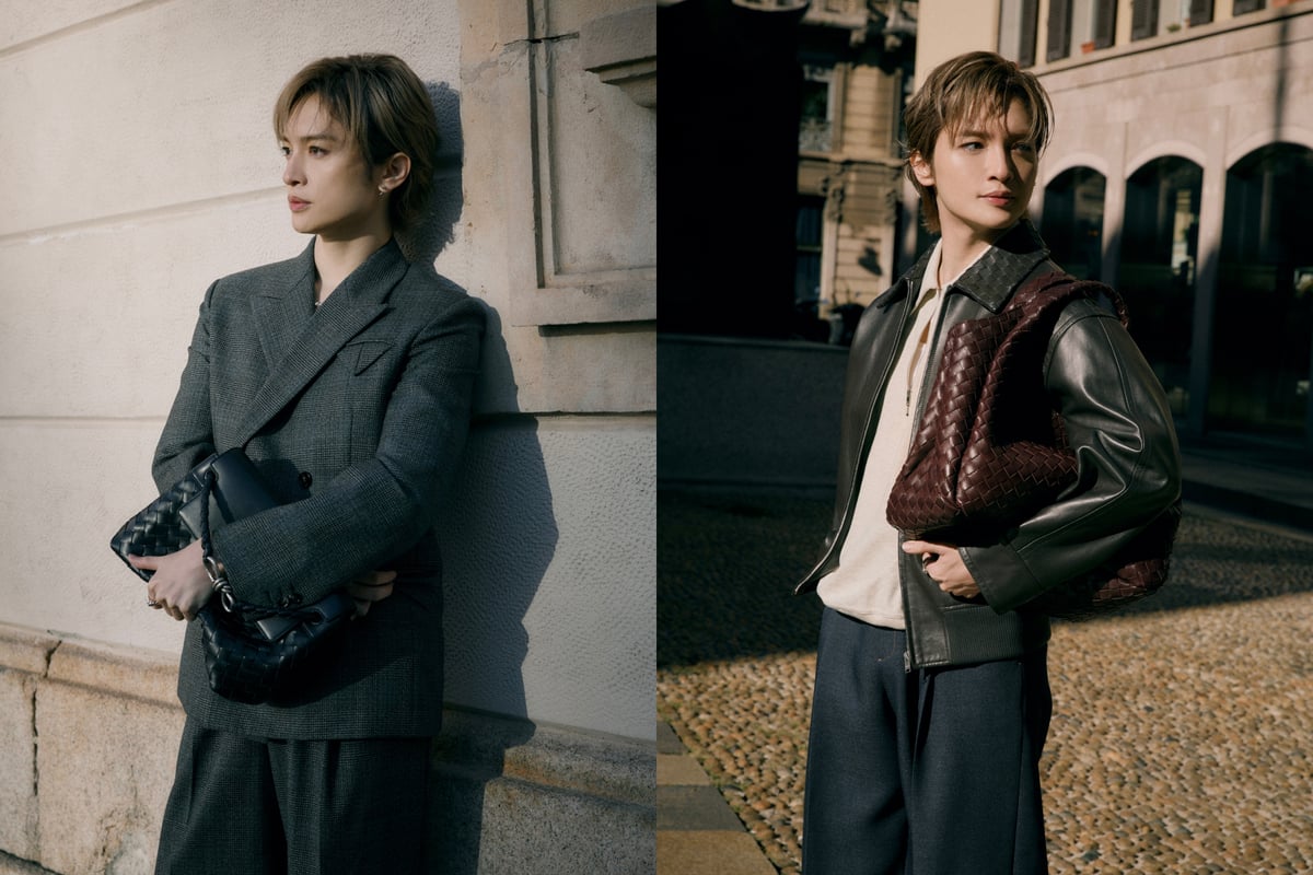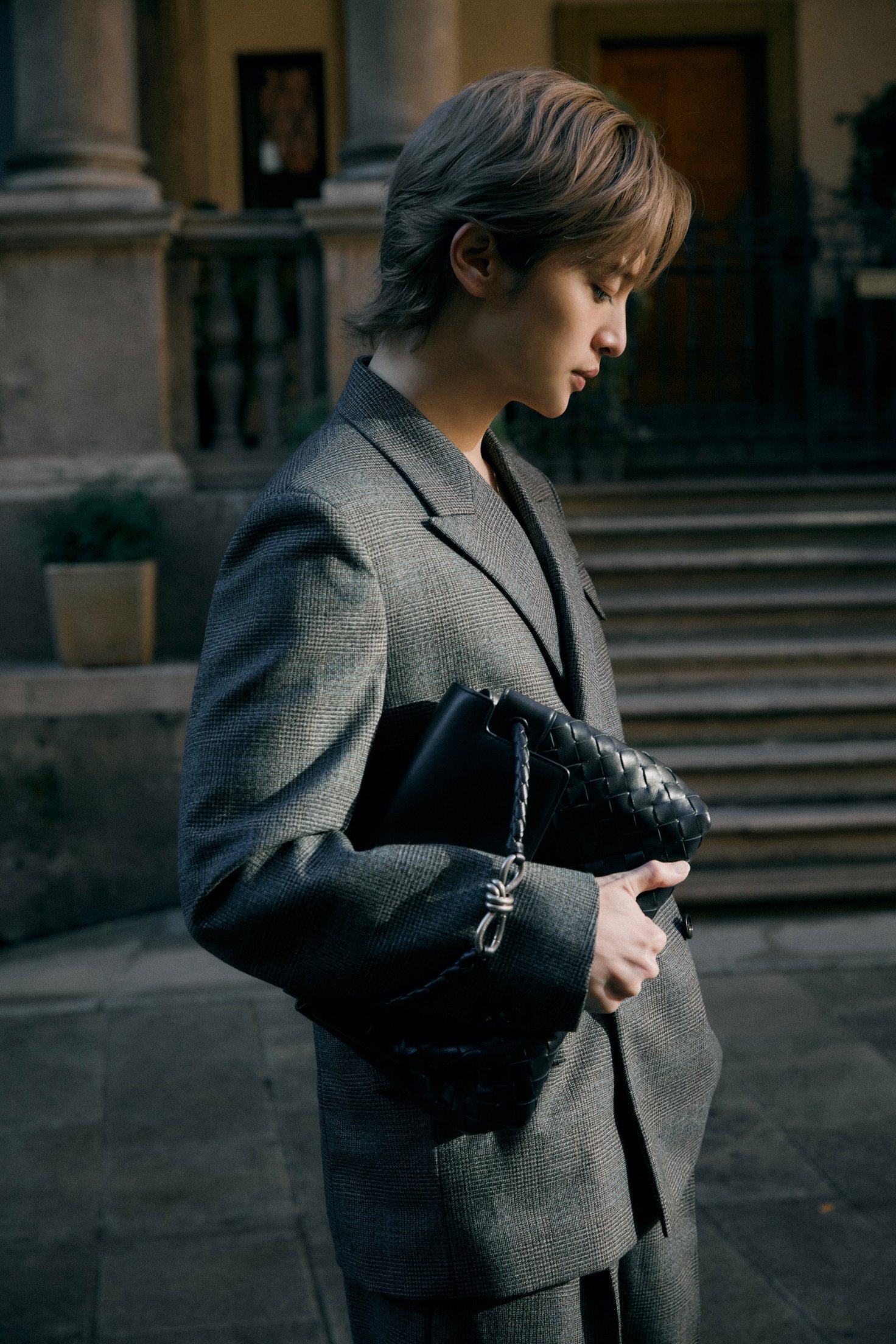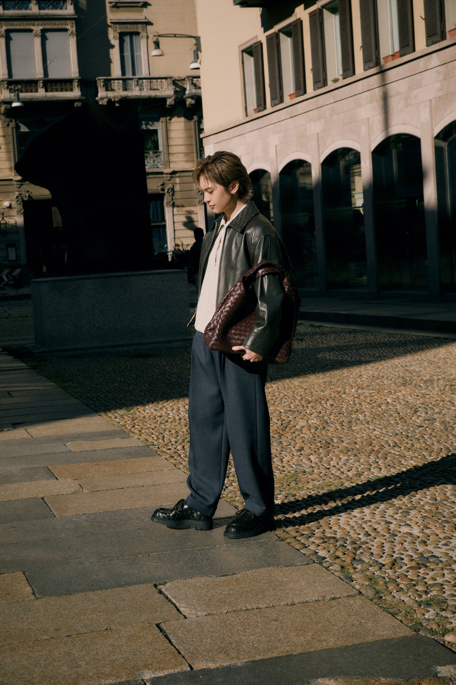 「ボッテガ・ヴェネタ(BOTTEGA VENETA)」を象徴する技法〈イントレチャート〉は、イタリア語で“手編み込み”を意味する。従来の格子パターンに対し、45度の斜めに編み込むことでより柔らかなフォルムを生み出すことを可能にし、熟練の職人たちが一編みごとに魂を込めてきた伝統の結晶だ。タフでありながら、しなやか——。ボッテガ・ヴェネタの真髄、50周年を迎えたイントレチャートの相反する要素を宿した革の表情を、玉森裕太がミラノの街で贅沢に味わう。