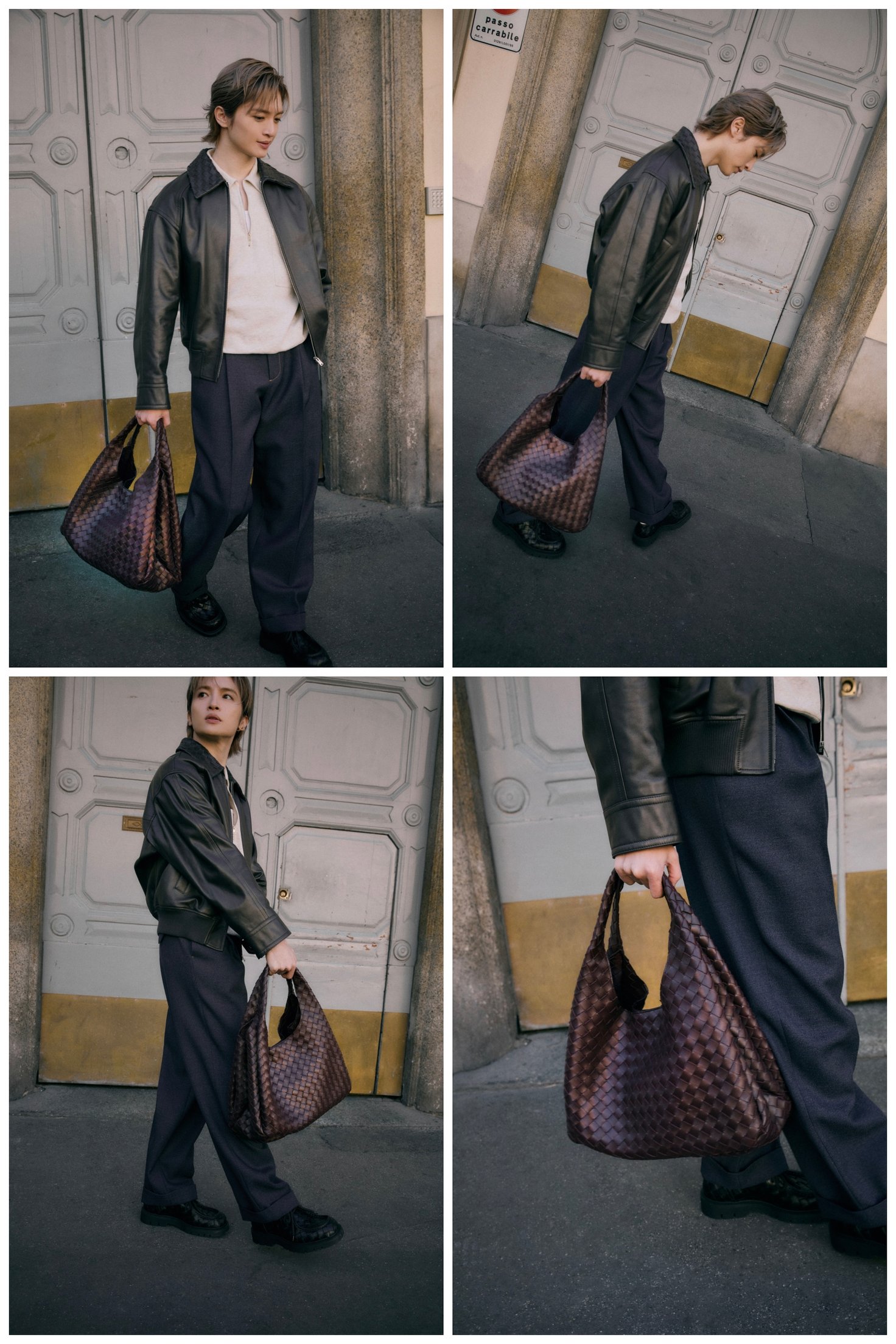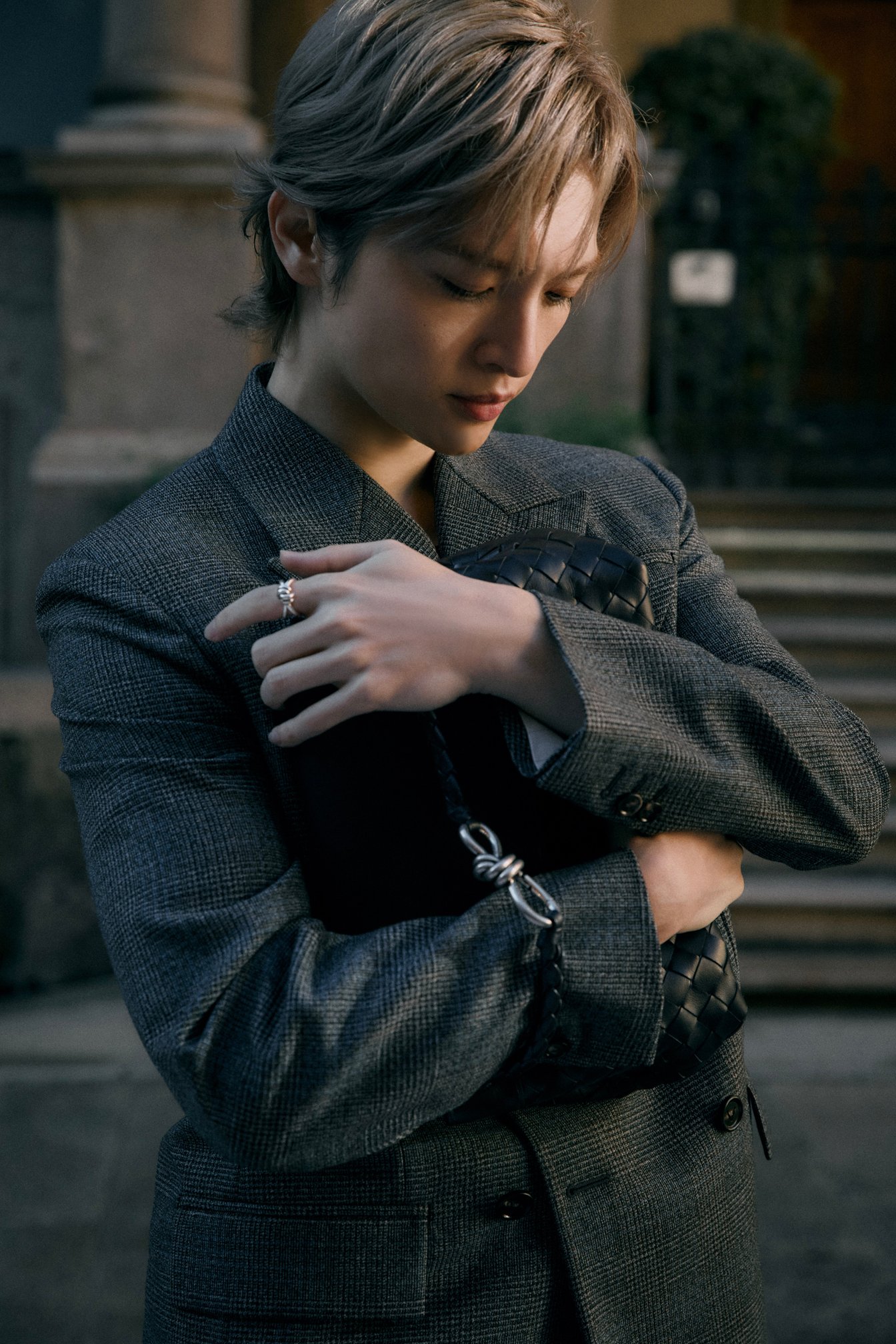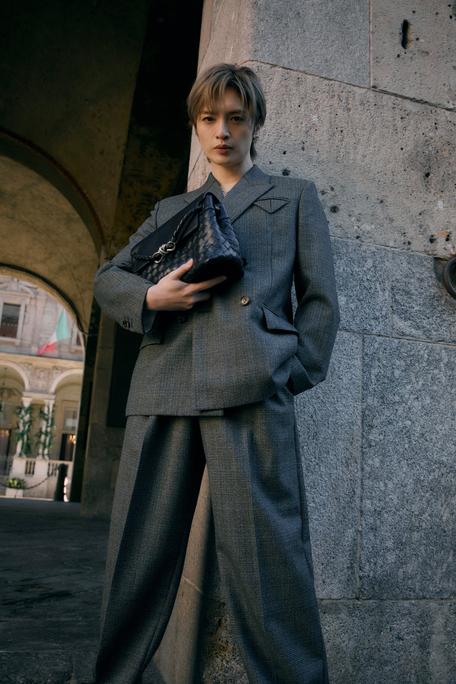 「ボッテガ・ヴェネタ(BOTTEGA VENETA)」を象徴する技法〈イントレチャート〉は、イタリア語で“手編み込み”を意味する。従来の格子パターンに対し、45度の斜めに編み込むことでより柔らかなフォルムを生み出すことを可能にし、熟練の職人たちが一編みごとに魂を込めてきた伝統の結晶だ。タフでありながら、しなやか——。ボッテガ・ヴェネタの真髄、50周年を迎えたイントレチャートの相反する要素を宿した革の表情を、玉森裕太がミラノの街で贅沢に味わう。