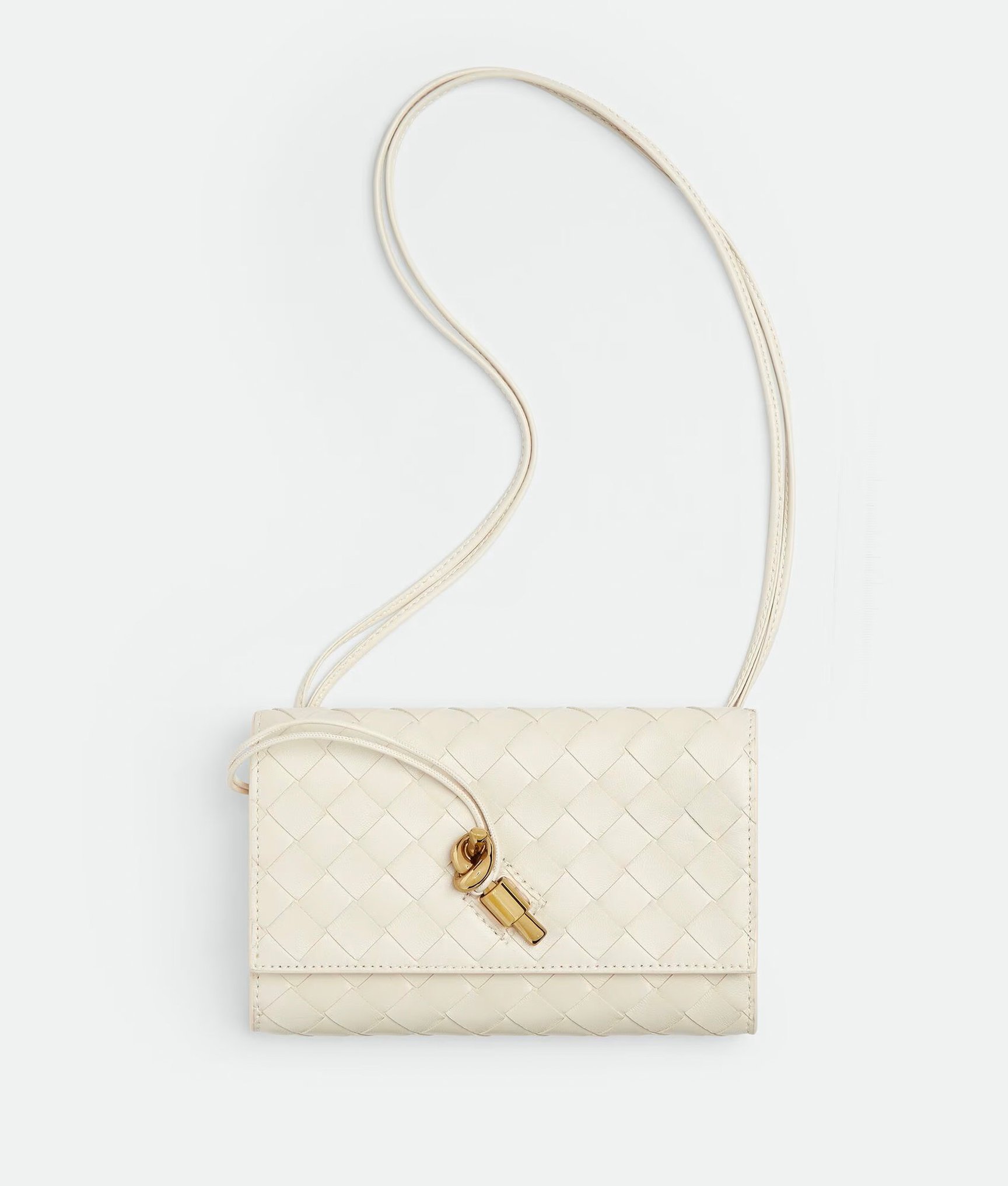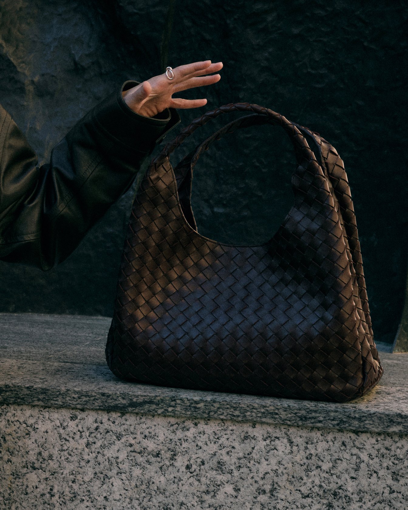 構造的なシェイプでありながら、流れるようなシルエットで持つ人の身体に寄り添う「カンパーナ」。 なめらかな手触りの上質なナッパレザーを贅沢に編み上げたこのショルダーバッグは2004年スプリングコレクションに登場し、イントレチャートの誕生50周年を記念して新たに解釈された不朽の名品。クラフツマンシップに裏打ちされた編み地は、手にする人の動きに呼応するようにたおやかに形を変え、使い込むほどに風合いを増し、持つ人と共に時間を刻んでいく。