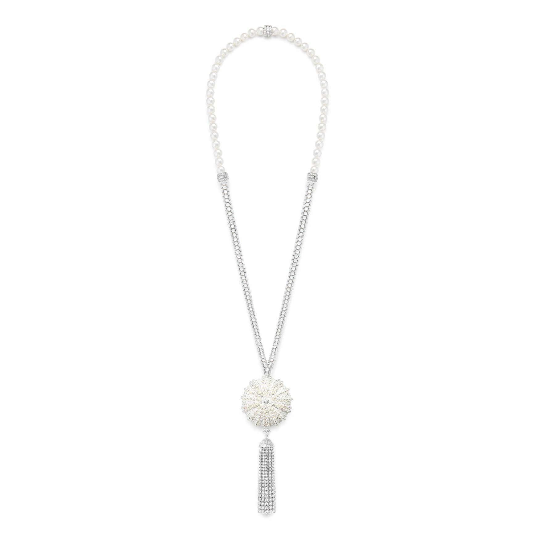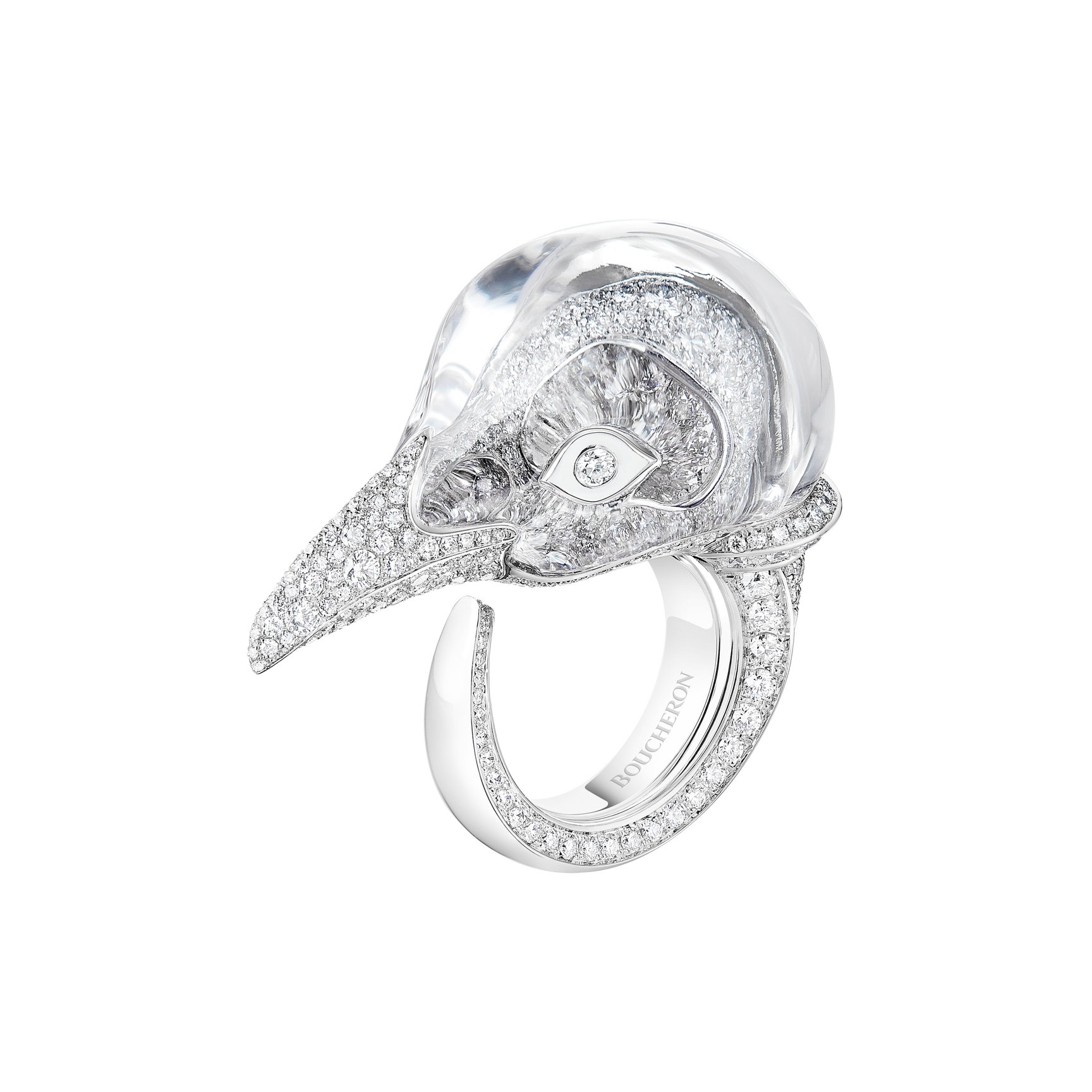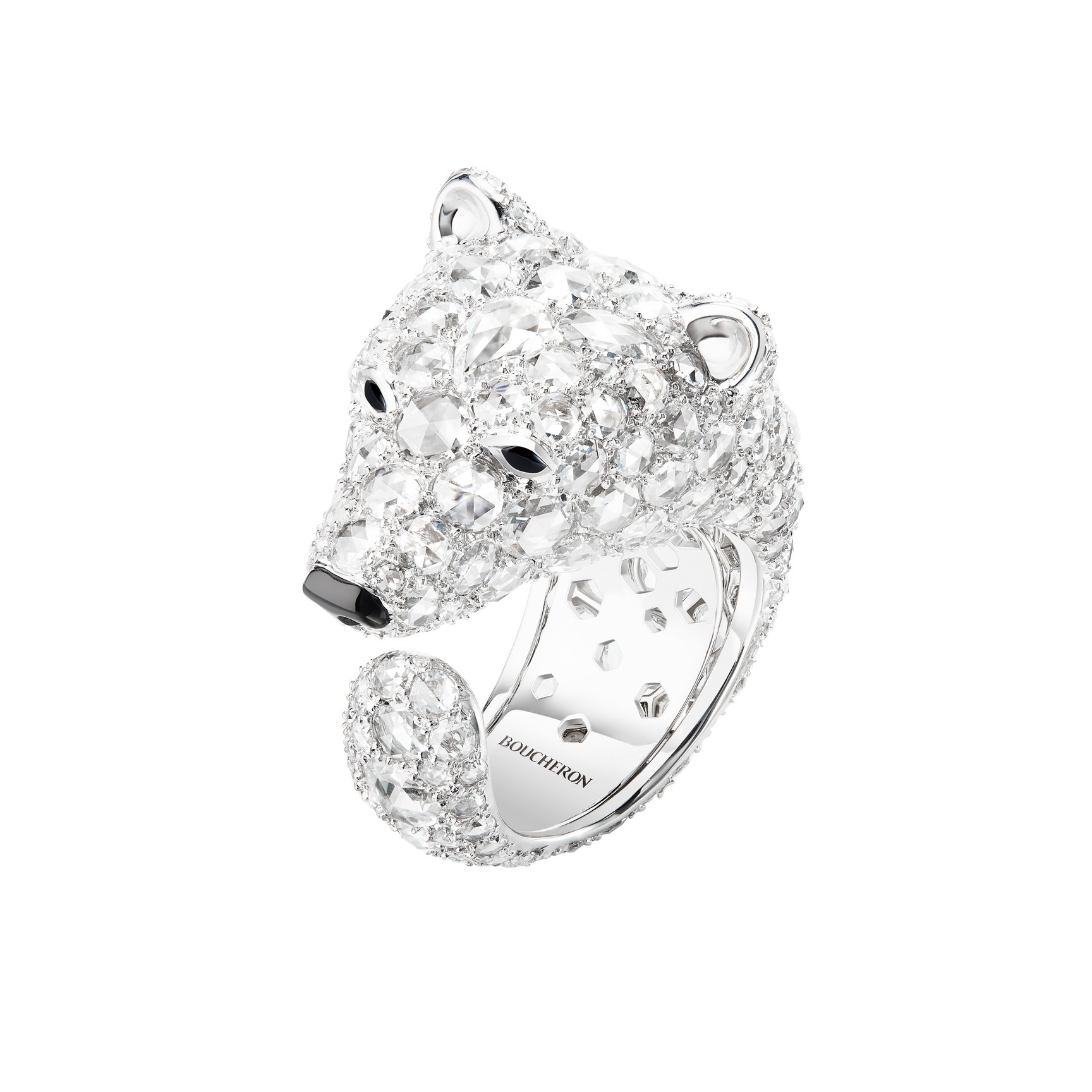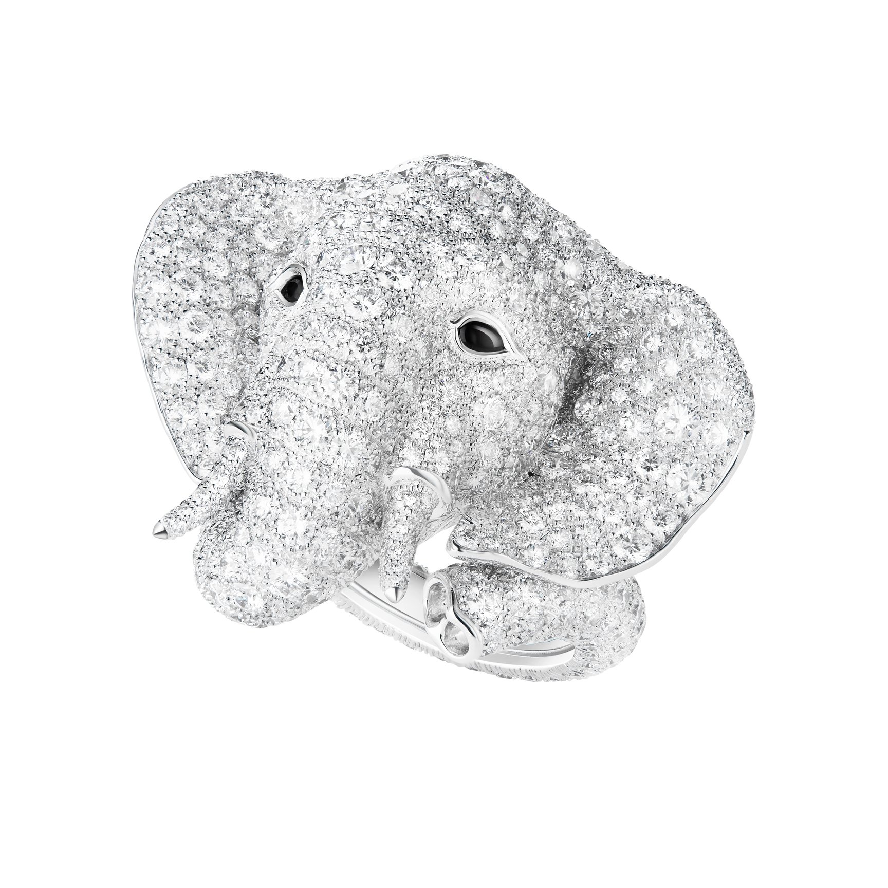 「PEBBLE WOMAN」が描き出すのは、月の海原や天空に広がる広大な浜辺といった静かで穏やかな世界。「ガレ ディアマン ネックレス」は、ペブル(小石)を裏側から半透明になるまで削って軽量化し、ラウンドブリリアントカットのダイヤモンドを配した。ウニをスキャンしてシルバーでフォルムを再現した「ウルサン ディアマン ネックレス」はパールとダイヤモンドが装飾され、6通りの着用が楽しめる。また、ホッキョクグマや象など、想像の世界に登場する動物たちがダイヤモンドが煌めくリングとなってラインナップしている。