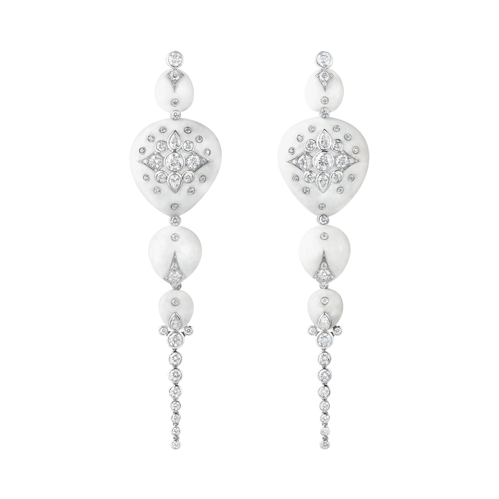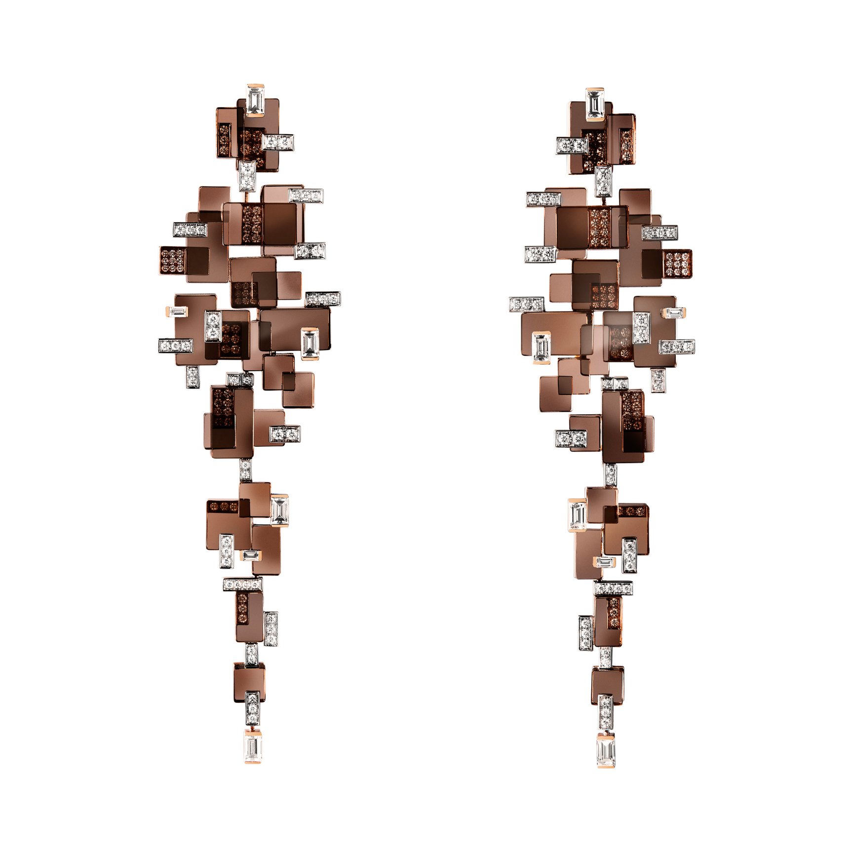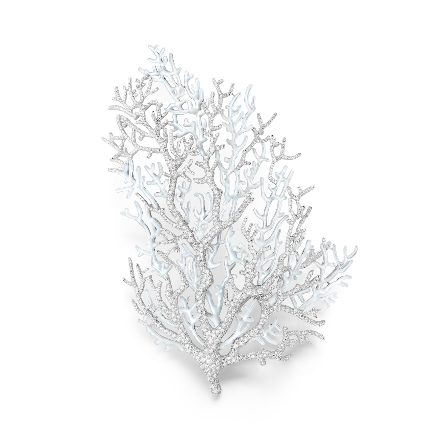 「EARTHAN WOMAN」は、オークル、ブラウン、クレイのカラーをメインに、植物や動物の有機的なフォルムを表現。磁石を用いて肩に留めるスタイルの「ボワ ディアマン ブローチ」は、ローズウッド(木材)で繊細な花びらを再現し、ゴールドとダイヤモンドを組み合わせた。地球の深い場所に存在する結晶から着想を得た「クリストー イヤリング」、2つの巻貝を組み合わせた「ジャック コキヤージュ ブローチ」など、大地の力強さを讃えるコレクションとなっている。