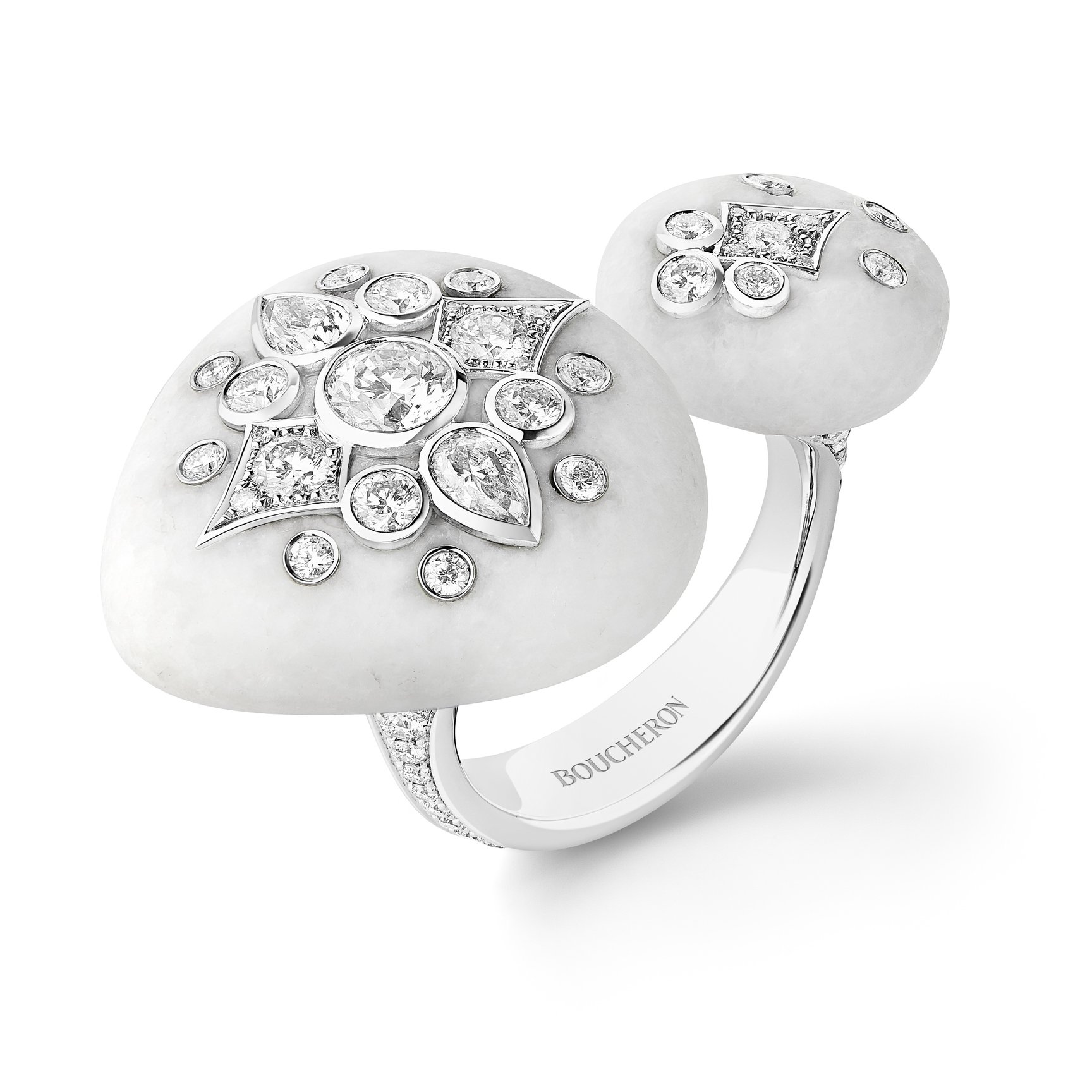 「ブシュロン(BOUCHERON)」が、新作ハイジュエリーコレクション「Ailleurs -アイユール」を発表した。コレクション名はフランス語で「ここではない何処か」の意味を持つ。クリエイティブディレクターのクレール・ショワンヌ(Claire Choisne)は、外出制限のあったコロナ禍に想像の世界を広げ、5つのユニバースを思い描いたという。小石、藤、木材、隕石といった天然素材をプレシャスなハイジュエリーと融合するなど自由な感性を注ぎ込み、幻想的な5つのコレクション「SAND WOMAN」「LEAF WOMAN」「EARTHAN WOMAN」「PEBBLE WOMAN」「VOLCANO MAN」を制作した。