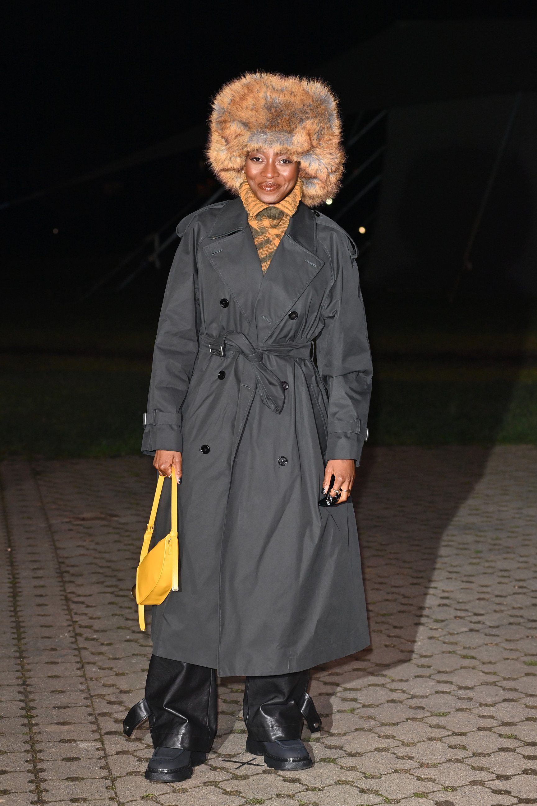 会場には、スケプタ(Skepta)やバリー・コーガン(Barry Keoghan)、リトル・シムズ(Little Simz)、カノ(Kano)、ソン・フンミン、チョン・ジヒョンなど豪華ゲストが集結。日本からは森星が駆けつけた。すべてのゲストが着席すると、エイミー・ワインハウスの「You Know I'm No Good」が鳴り響く。DJのBenji Bがキュレーションするショー音楽は、毎回英国のミュージシャンがフィーチャーされてきており、ブリアル、ディーン・ブラントに続き、今回はエイミー・ワインハウスだ。その理由は、コレクションの内容とマッチしているからというより、エイミーの伝記映画『Back to Black』が4月にイギリスで封切られるからだろうか。そういえばエイミー役のマリサ・アベラ(Marisa Abela)もショーに来場し、フォトコールに応えていた。