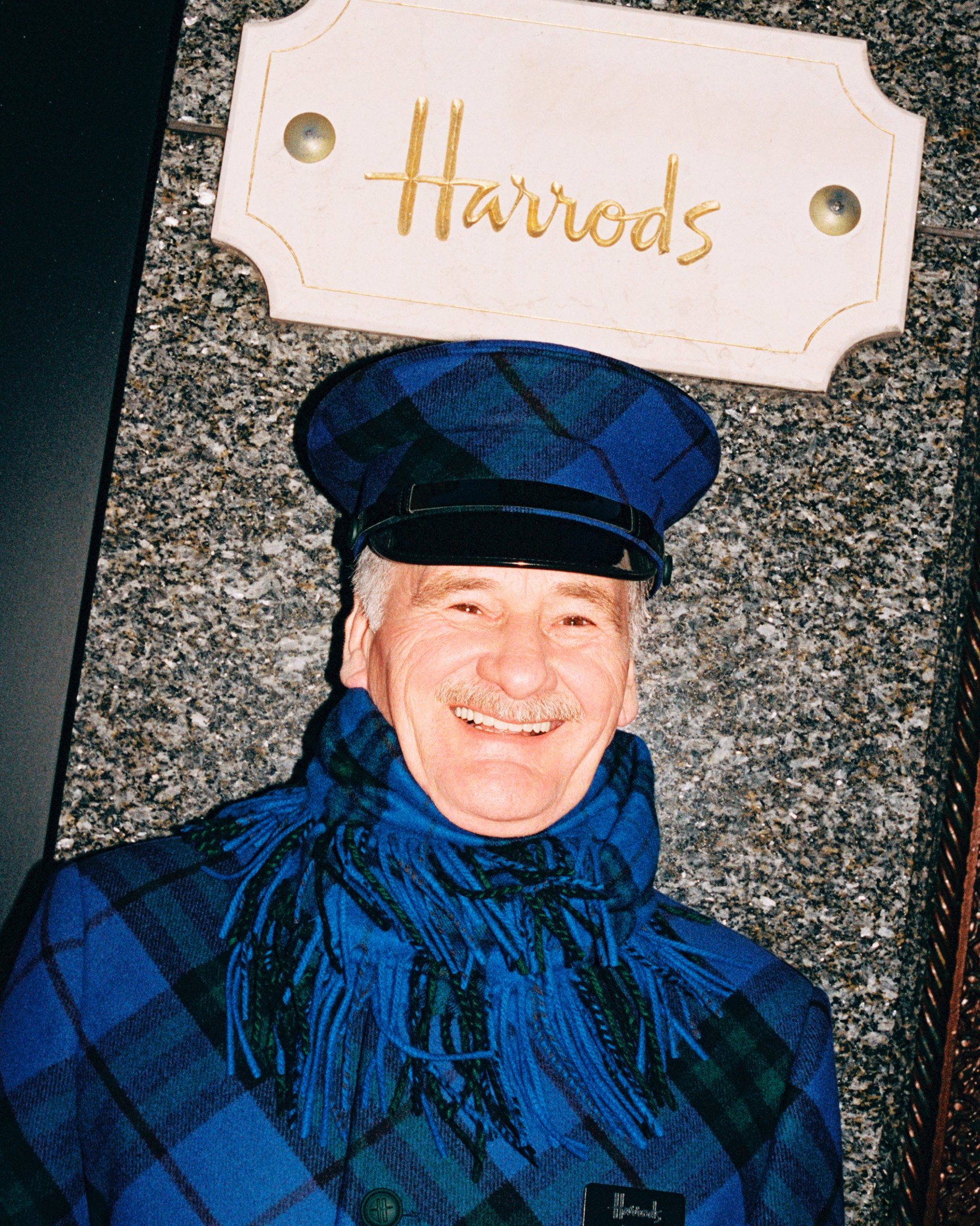 今年、40周年を迎えたロンドンファッションウィーク。5日間に渡って開催され、その最終日に締めくくりを任されたのが、ダニエル・リー(Daniel Lee)が率いる「バーバリー(BURBERRY)」だ。昨シーズンでは、ロンドン中心部の駅や著名カフェをジャックするなど、ランウェイ外でも大きな広告施策が見られたが、それは今シーズンでも継続。1834年創業の老舗百貨店「ハロッズ」を2月いっぱいテイクオーバーし、館全体をブランドカラーのナイトブルーに染め上げた。「ハロッズ」の名物ドアマン「グリーンマン」は、「バーバリー」の新チェック柄のユニフォームに衣替えし顧客を招き入れた。その制服が、ファッションブランドによってデザインされるのは初だという。
