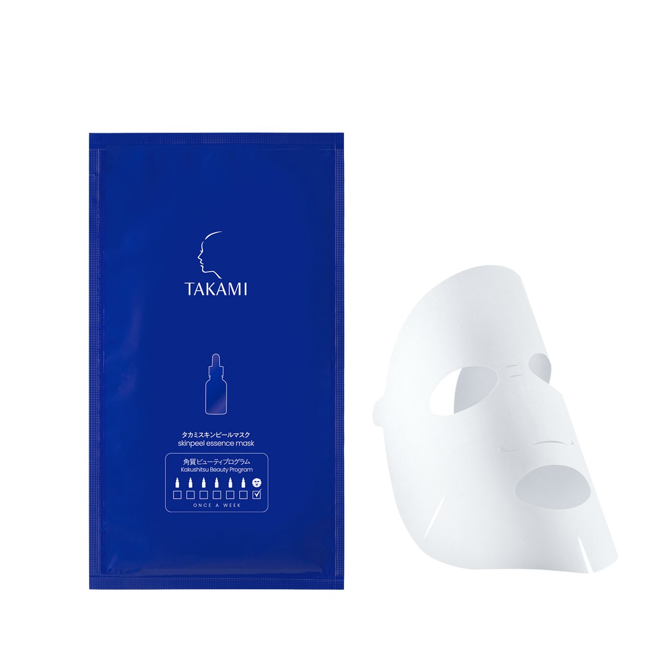 角質美容水・タカミスキンピールを2分の1本染み込ませた、角質美容水マスク。肌との摩擦を防ぐシートで、速攻ケア、スキンピールをより丁寧に角質層へ届けます。