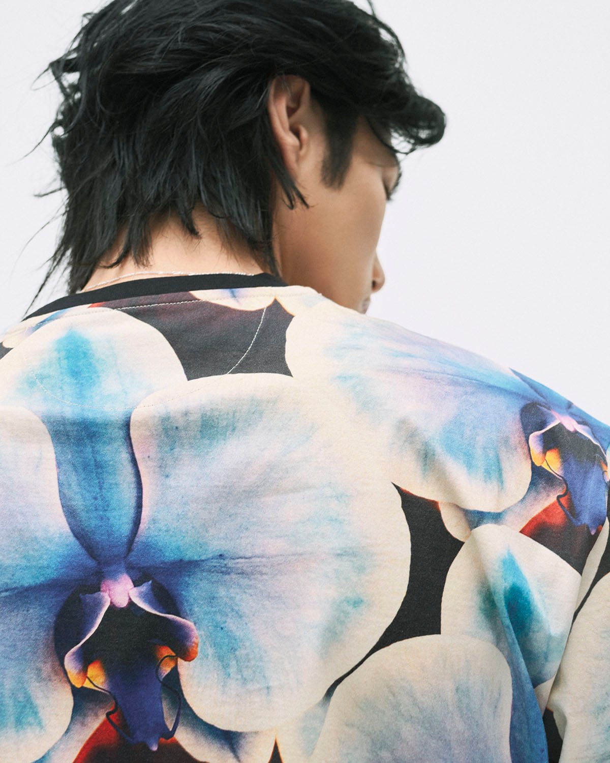 日本のファッションシーンをエンパワーメントするべく、楽天が推進するプロジェクト「by R」。3月17日に開幕する「Rakuten Fashion Week TOKYO 2025 A/W」には、イギリスを代表するファッションライフスタイルブランド「ポール・スミス(Paul Smith)」が「by R」の支援によって初参加する。それに先駆け、by R限定アイテムを発表。2025年秋冬コレクションのテーマである“フォトグラフィー”を着想源に、ポール・スミス自身が撮り下ろした写真から切り取ったジャパニーズオーキッド(蘭の花)をあしらったコレクションアイテムを、モデルの大平修蔵がまとった。