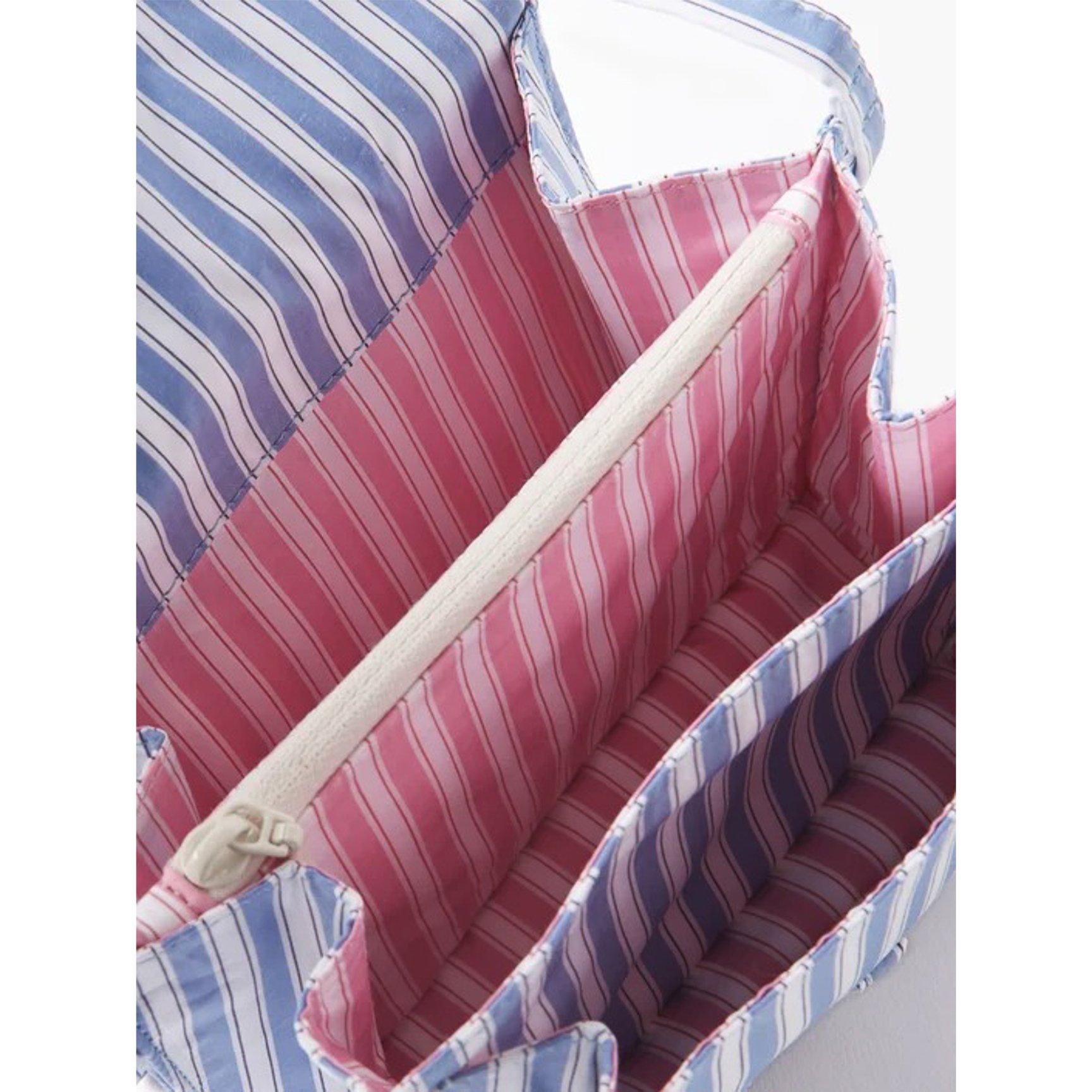 爽やかな陽射しに良く似合う、「マルニ(MARNI)」のストライプコットンキャンバスバッグ。軽くコンパクトなボディには、バイカラーのコンパートメントが採用され、すっきりとした整頓が叶います。シャツをリメイクしたような、遊び心あるデザインに視線が集中しそう。