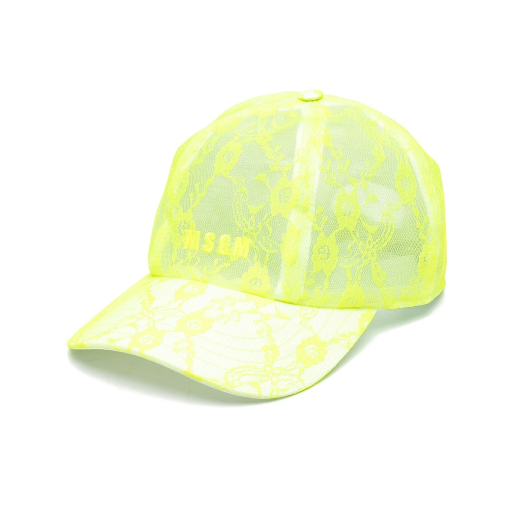 ネオンイエローが眩しい「エムエスジーエム(MSGM)」のキャップは、レディなムードを忘れないレース素材を採用。透けるフローラルデザインで、デニムはもちろんワンピースとも好相性。フロントにはコンパクトなロゴをオン。