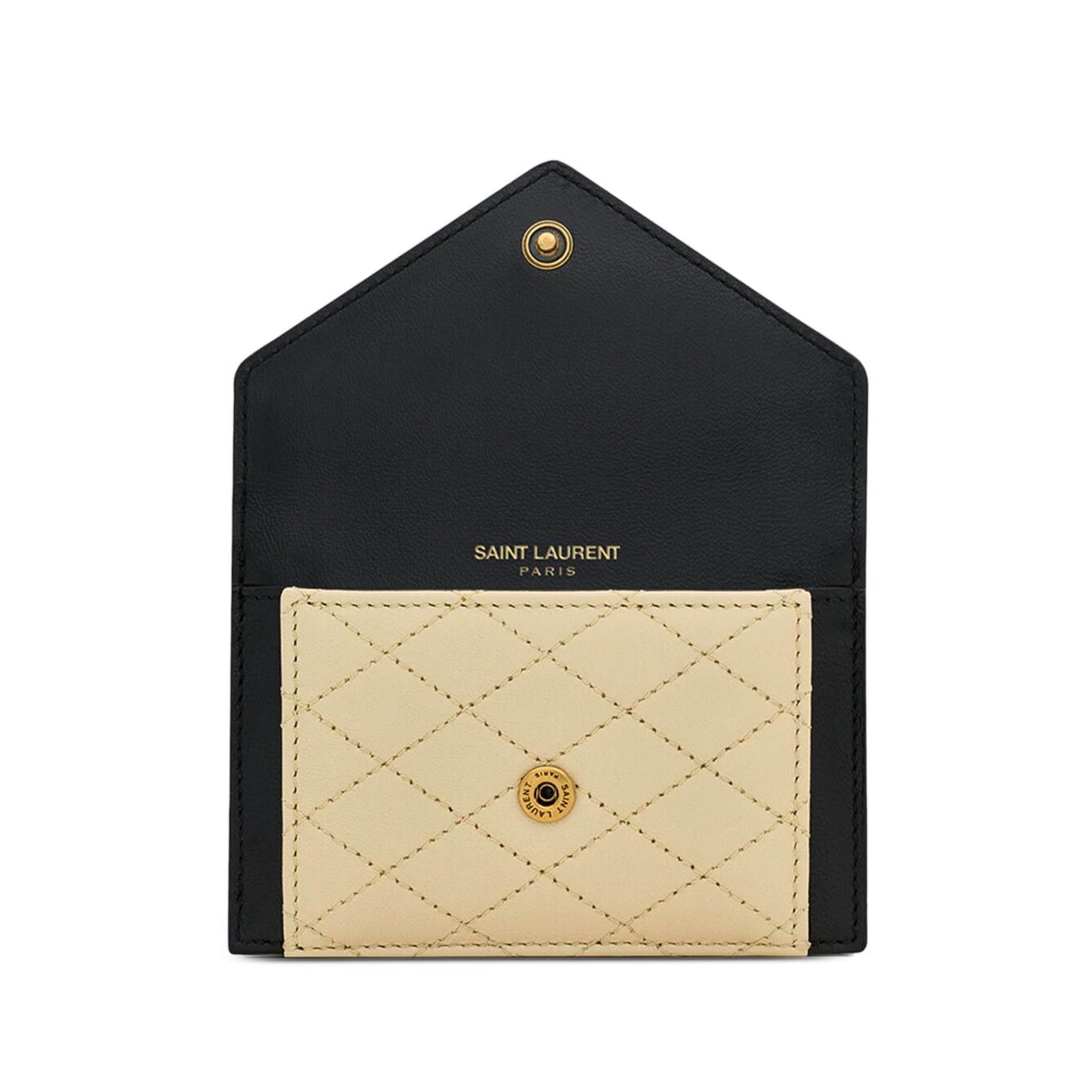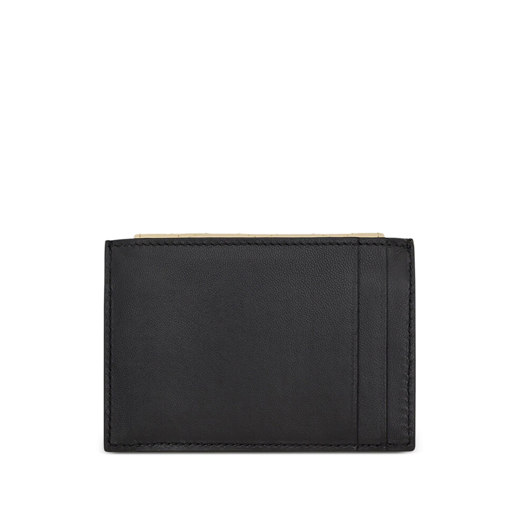 コンパクトタイプは「サンローラン(SAINT LAURENT)」からピックアップ。センシュアルなYSLロゴが輝くカードケースは、フラップを開くとスナップボタン式のコインポケットがお目見え。背面にはカードスロットをふたつ配しています。