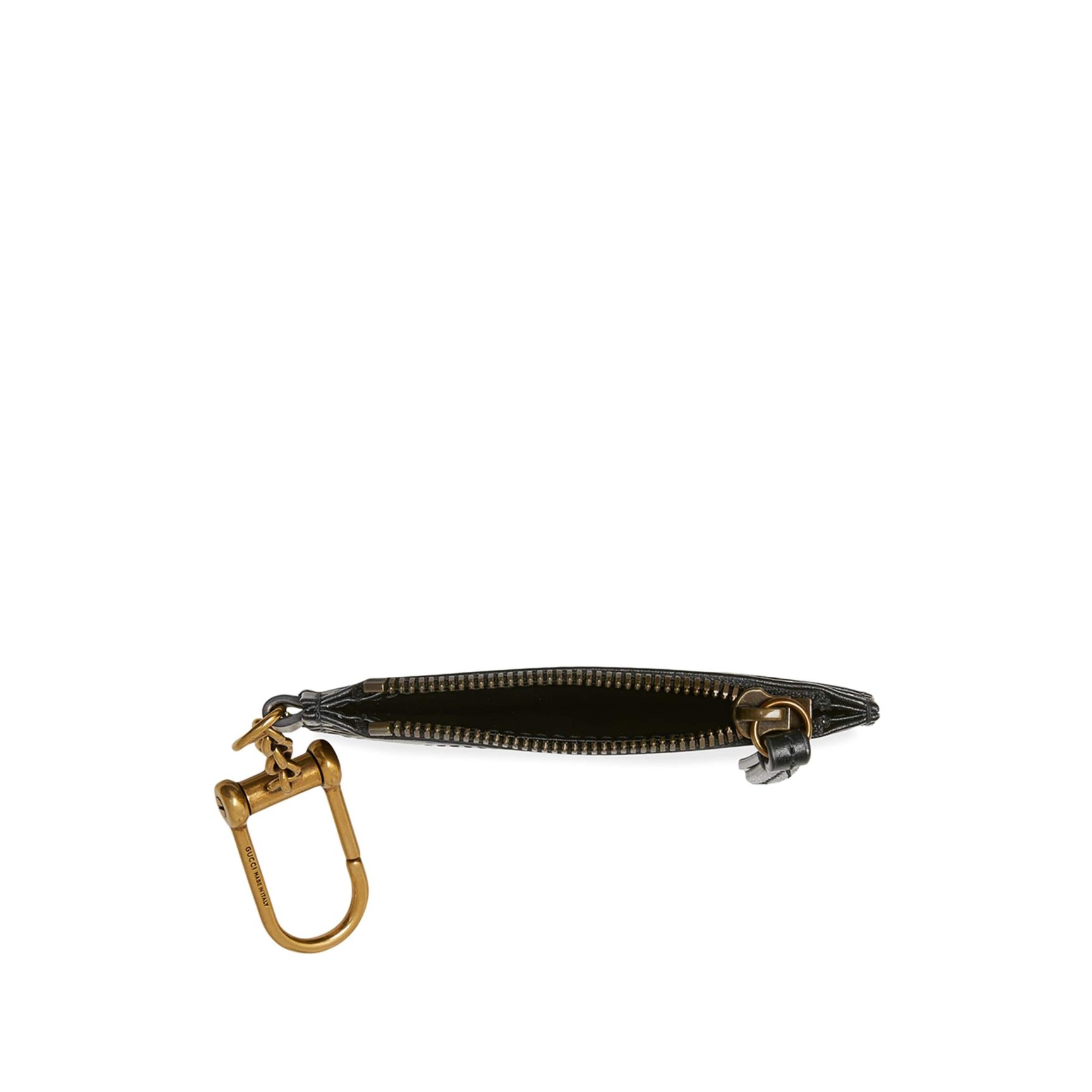ブラックのシェブロンキルティングレザーに光る、小さなダブルGをアクセントに飾った「グッチ(GUCCI)」。バッグチャームやキーホルダーとして利用することもできるチェーンとフックを取り付けた、自由度の高い持ち運びが実現するアイテムです。