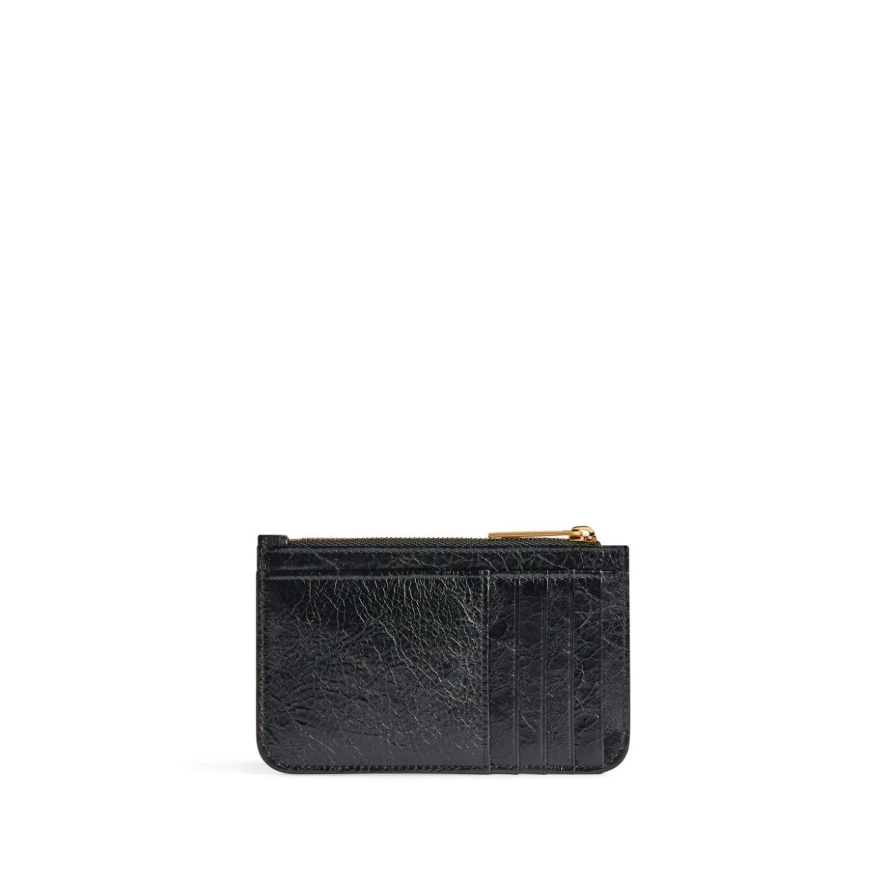特徴的なラムスキンの表情に惹かれる「バレンシアガ(BALENCIAGA)」。ドレッシーなブラック×ゴールドの色合いが、ワンランク上のラグジュアリーな雰囲気を醸します。外側にはカードスロット5つと、幅広のレシートポケットを配置。