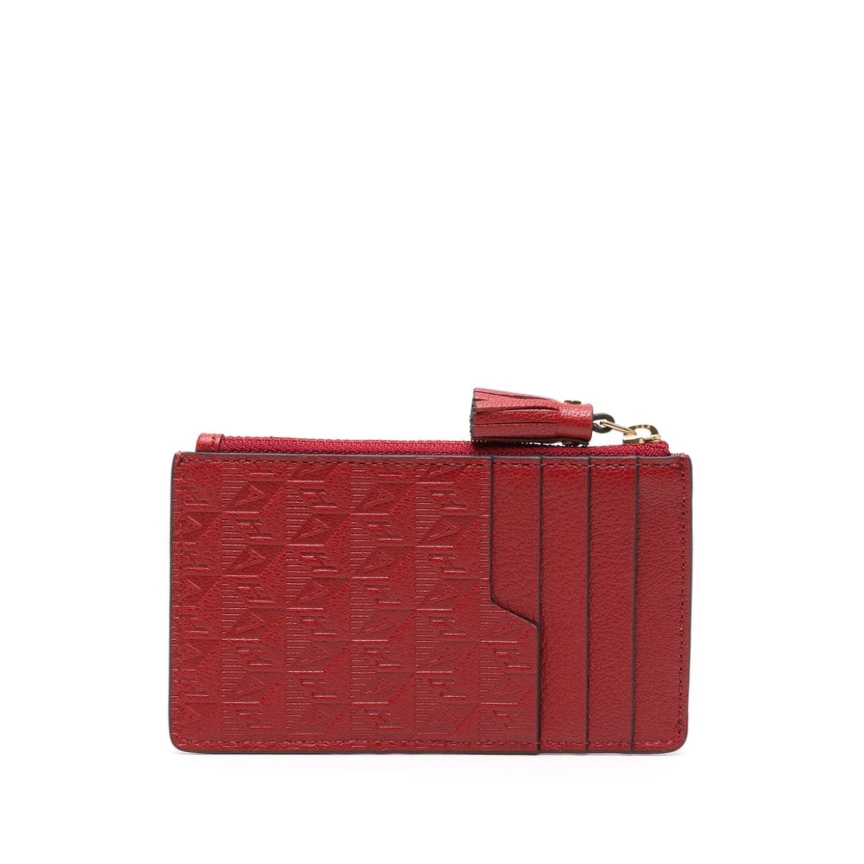 エンボス加工でモチーフを描いた「トリー バーチ(TORY BURCH)」。フロントには4つのカードスロット、バックにはマチ付きのコインポケットを備え、間にはスナップボタン開閉式のフリーポケットを配置。名刺や折りたたんだ紙幣などの収納が可能です。