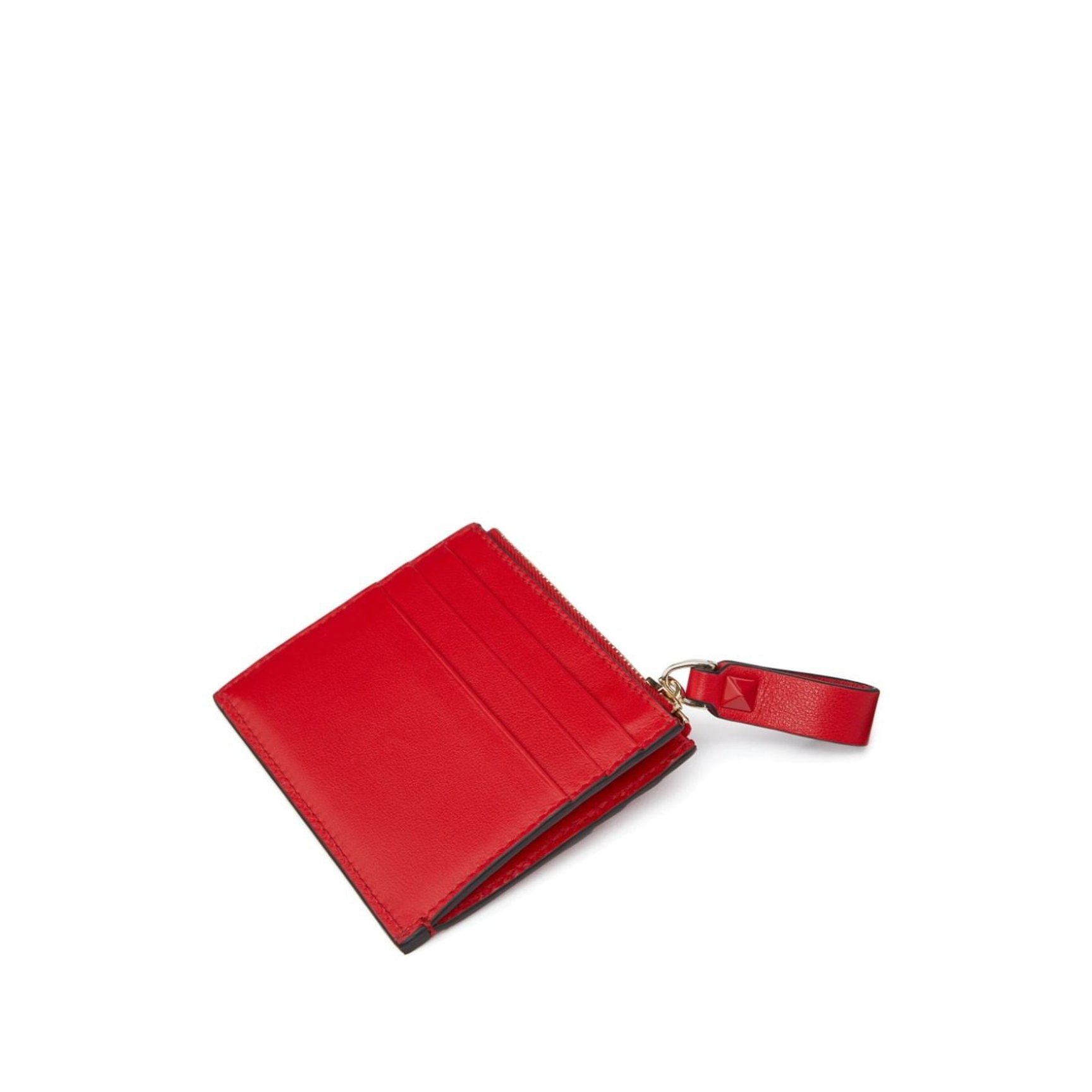 鮮やかなレッドが目を惹く「ヴァレンティノ ガラヴァーニ(VALENTINO GARAVANI)」。カードスロット6つとマチが開くコインポケットを装備した、機能性も発色も抜群なカードケースです。前面にはパワフルなロックスタッズが凛と連なります。
