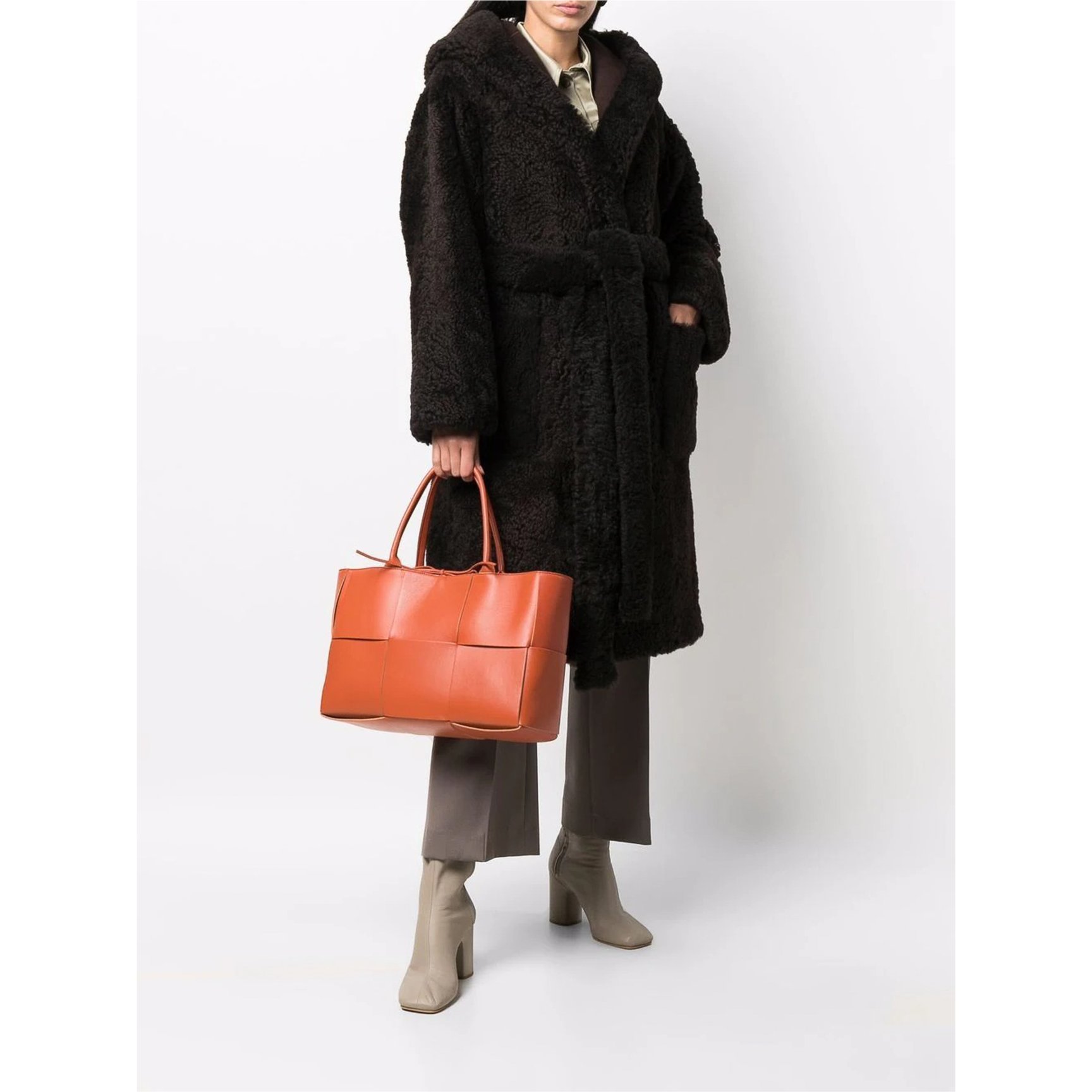まず最初にご紹介するのは、大きく編まれたイントレチャートがモダンな表情を見せる「ボッテガ・ヴェネタ(BOTTEGA VENETA)」のザ・アルコトート。深みのあるオレンジカラーのバッグは、洗練された色彩が魅力的。内側やポケットがバイカラーになった、大人の遊び心も忘れないアイテムです。ラベンダーやグリーン、ブラックなどの色違いも要チェック。