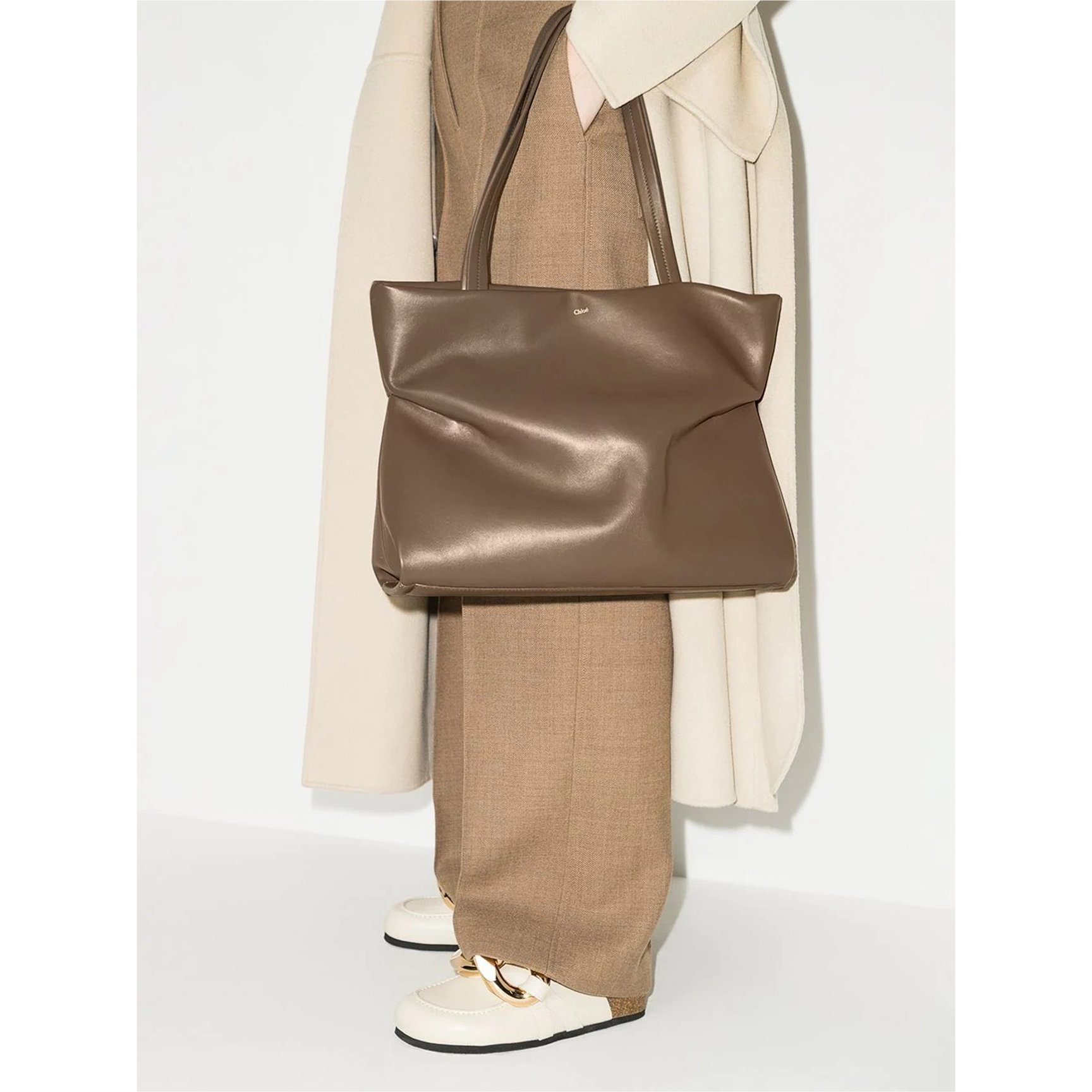 シャーリングディテールを施した、こなれ感漂う「クロエ(Chloé)」のシンプルトート。ブロンズゴールドの美しいカラーと艶感を持つボディが、ポジティブにオフィススタイルを彩ります。ミニマムなロゴとジップポケットを装備した、落ち着いたカラーリングながら新鮮味溢れるバッグです。