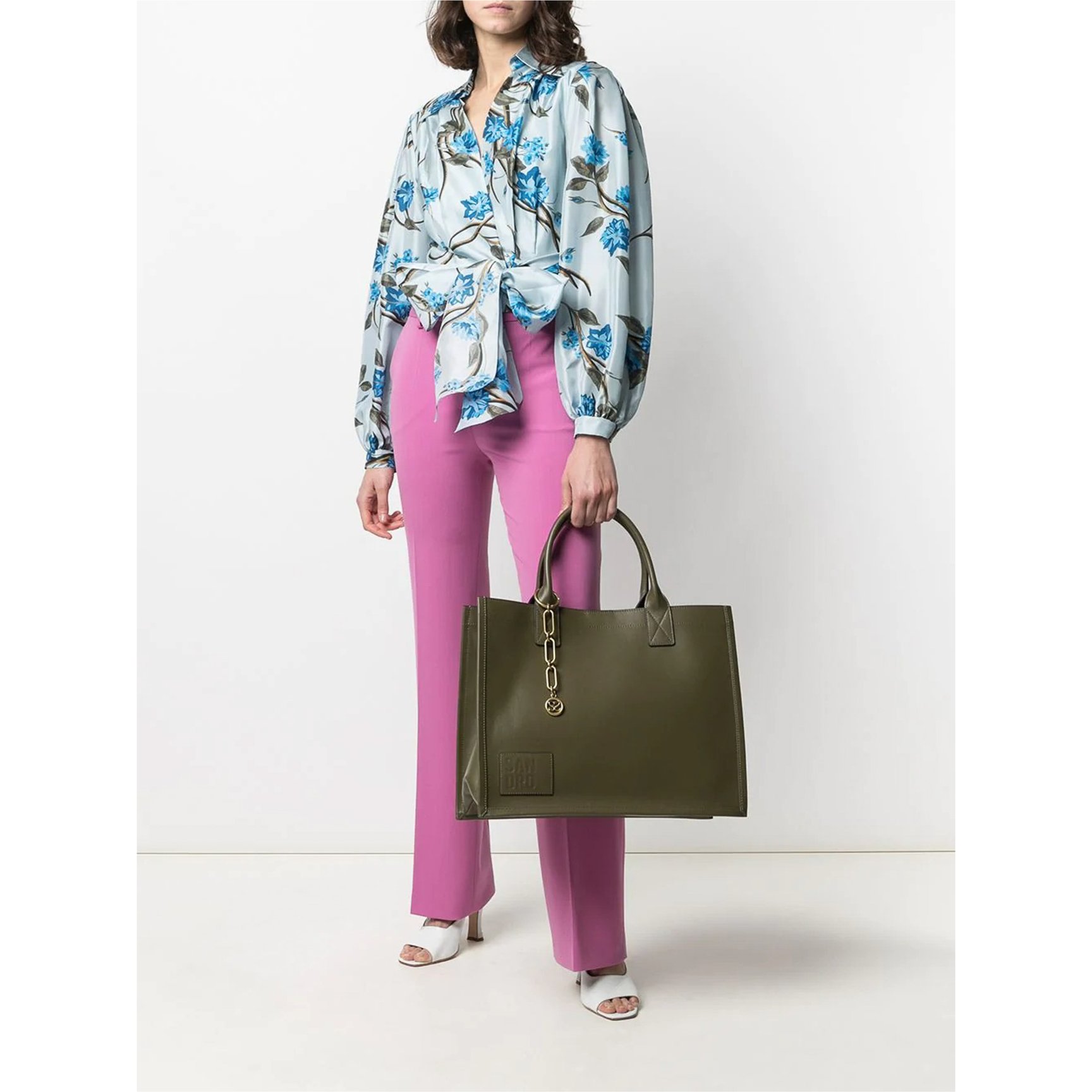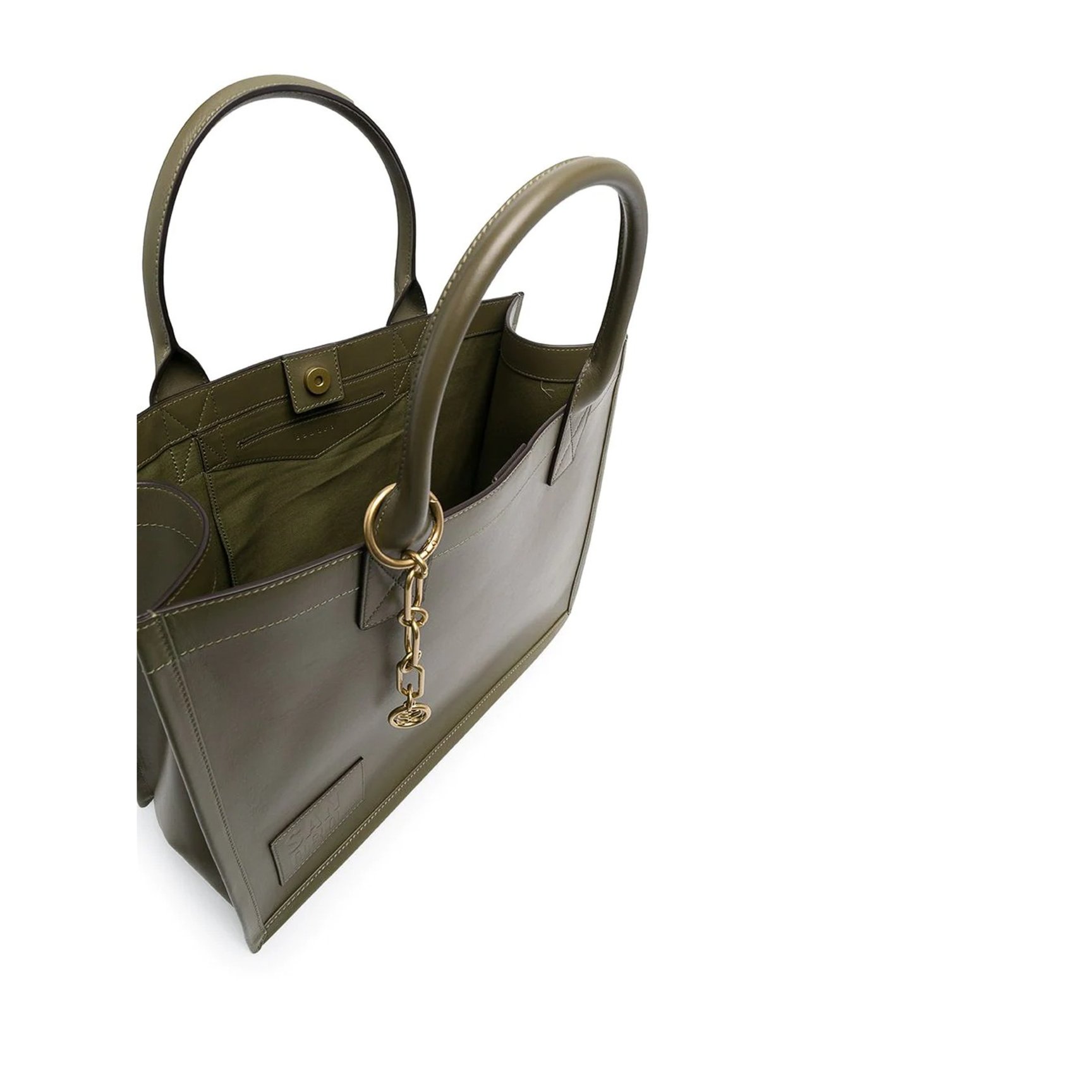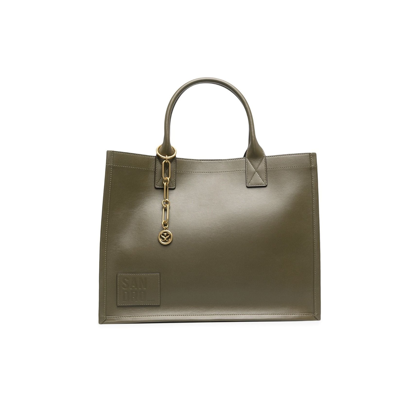 収納力のあるスクエアシェイプが頼もしい、「サンドロ(Sandro)」の環境への負荷が少ないレザーを採用したバッグ。内側が見通しやすいデザインで、荷物の出し入れがしやすくスピーディな収納が叶います。ミリタリーとは違う印象を放つスモーキーなカーキのボディに、揺れ動くゴールドのチェーンがアクセント。