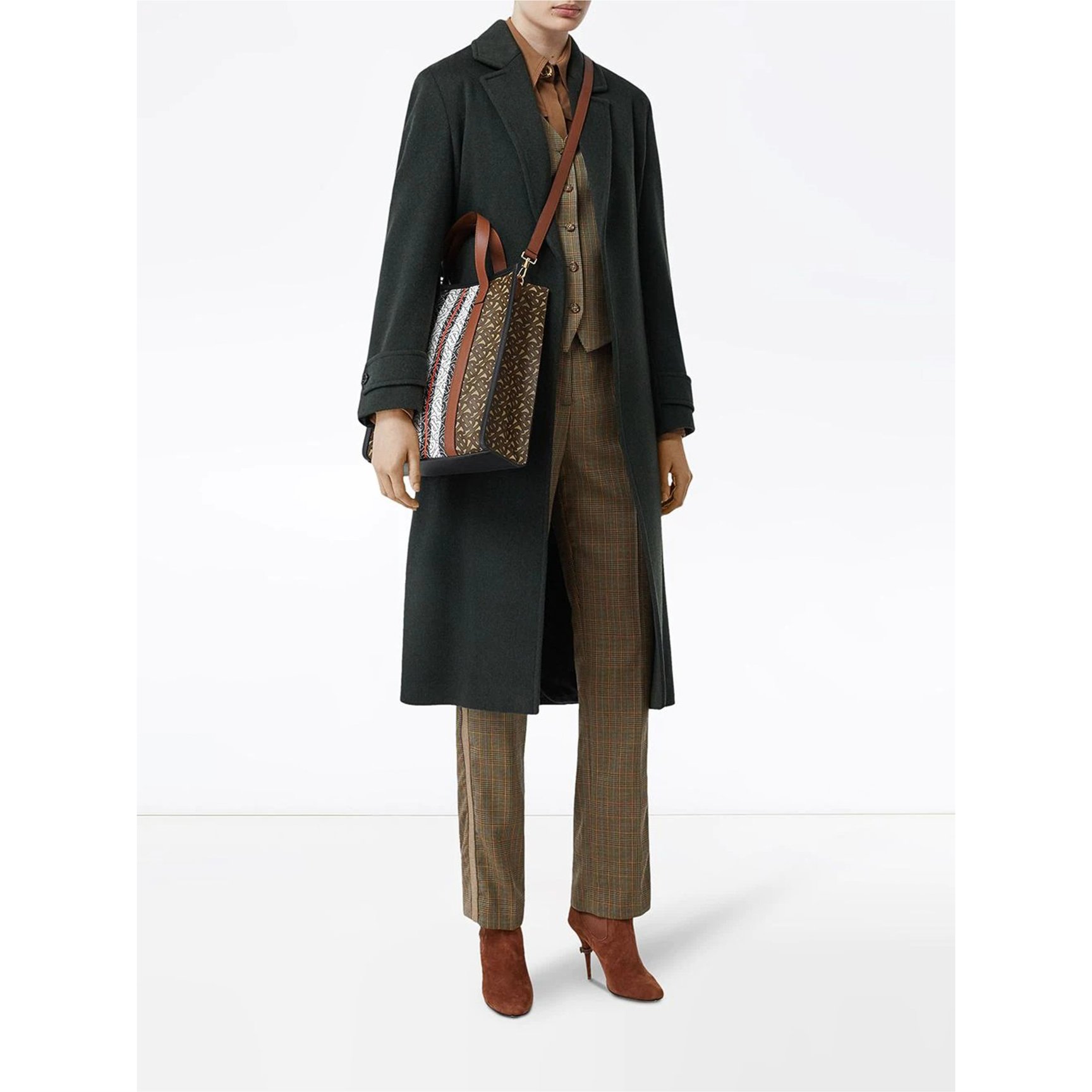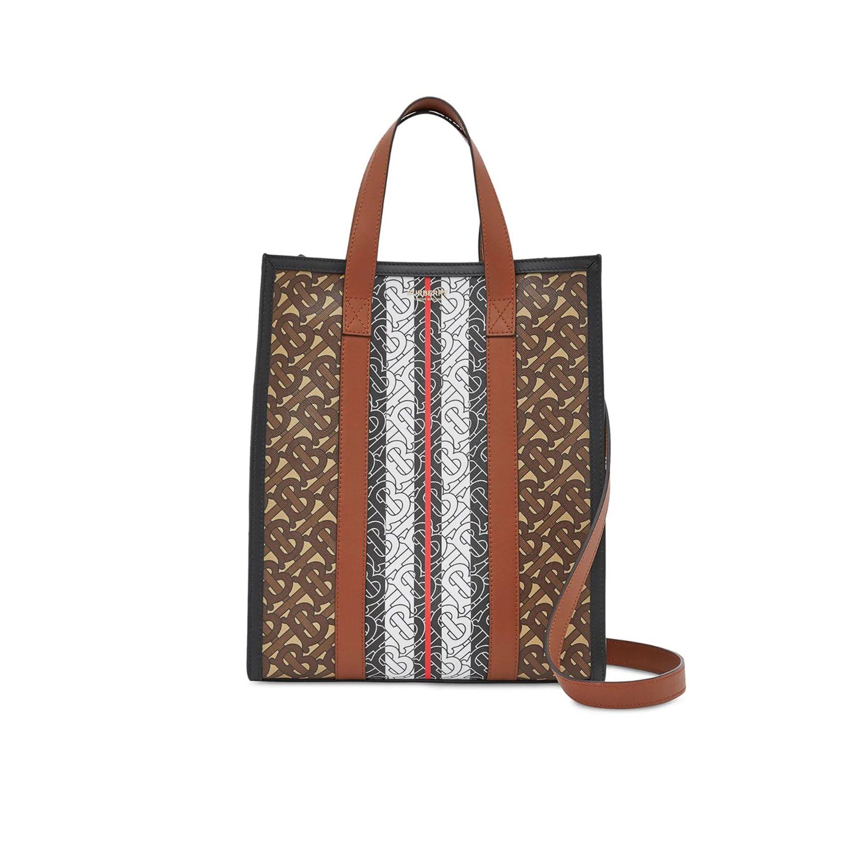 大胆なモノグラムストライプが、端整なフォルムの縦長トートに描かれた「バーバリー(BURBERRY)」のバッグ。バランスの良いカラーパターンとかっちりとしたスクエアデザインで、個性的ながらおしゃれなオフィススタイルに導きます。取り外し可能なショルダーストラップ付き。